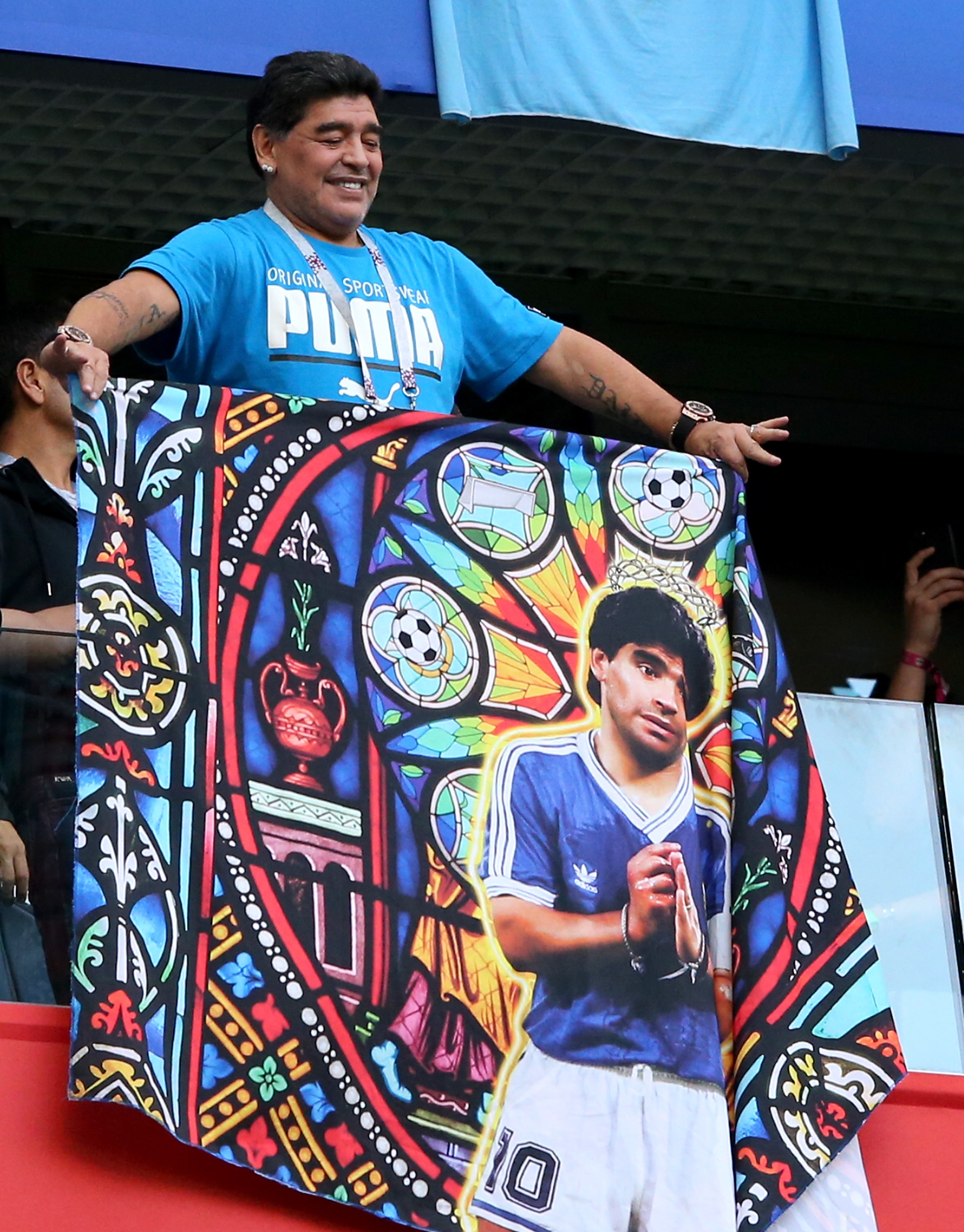 Легендата на Аржентина и международния футбол Диего Армандо Марадона още веднъж беше в център на вниманието по време на значимия мач на " гаучосите ". На стадион " Санкт Петербург Арена ", където Лионел Меси и компания играеха съдбоносен мач с Нигерия за класиране на осминафиналите, великата десетка първо изпадна в възторг след попадението на Меси в 14-ата минута.