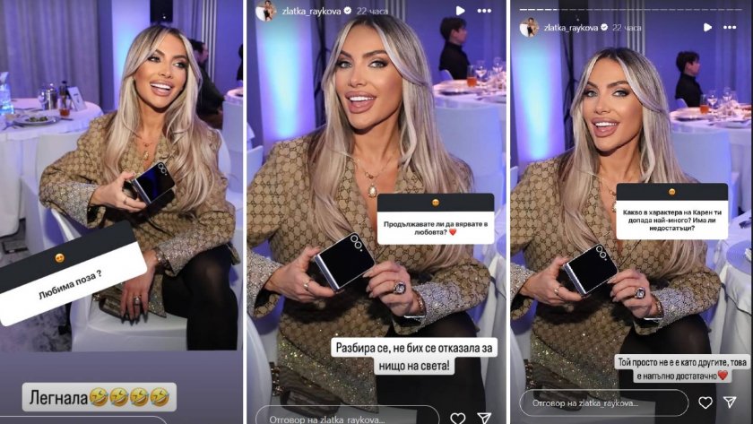 " Той просто не е като другите, това е изцяло задоволително ", написа хубавицата в отговор на въпрос какво в характера на Карен й подхожда най-вече и има ли дефекти.