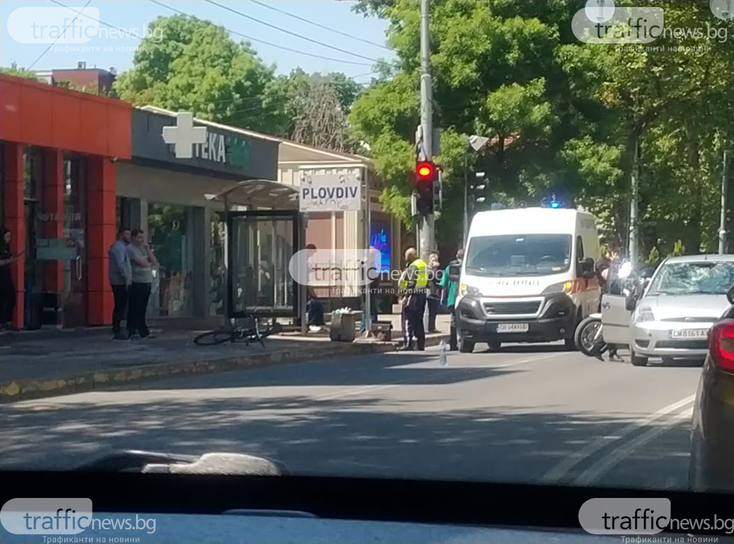 Инцидент до Военна Болница в Пловдив, кола отнесе колоездач