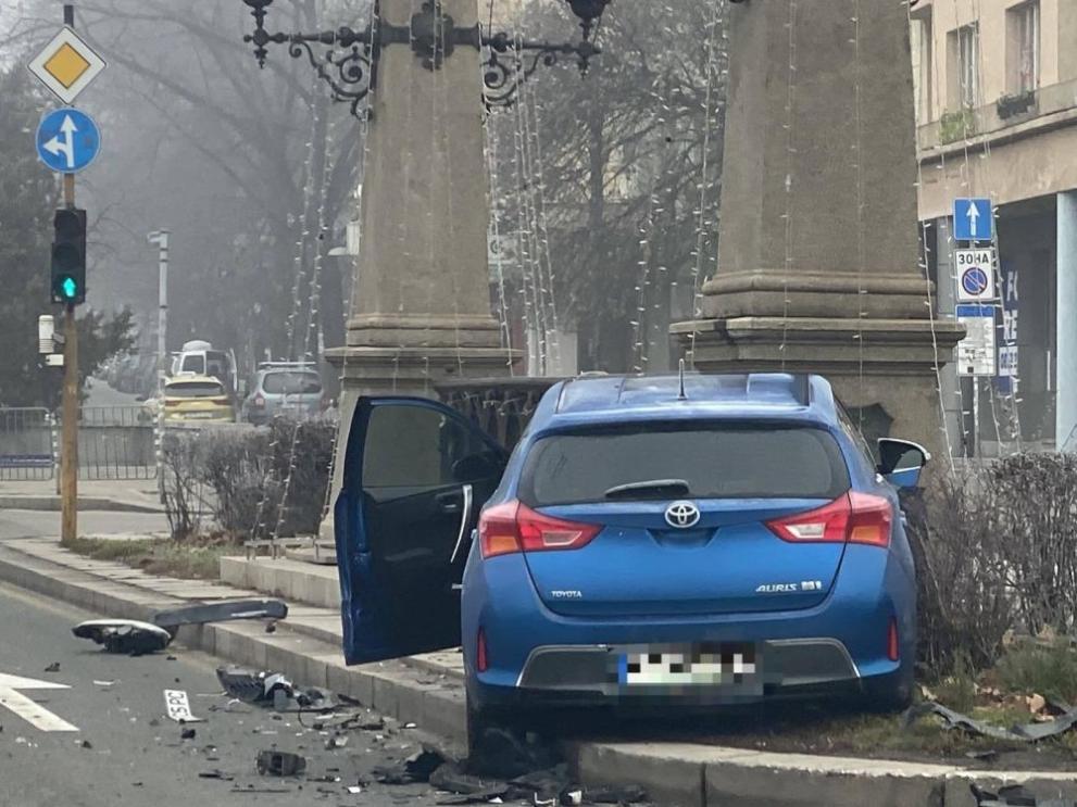 Кола се заби в колоните на орлите на Орлов мост