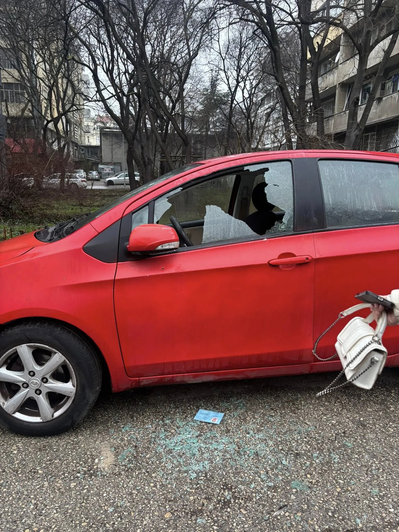 По думите ѝ става въпрос за червен Great Wall Voleex C10, паркиран в региона на образователното заведение. По автомобила са нанесени вреди, като едно от страничните стъкла е счупено. Стъклото е изцяло разрушено, а части от него са разпилени по земята до колата.