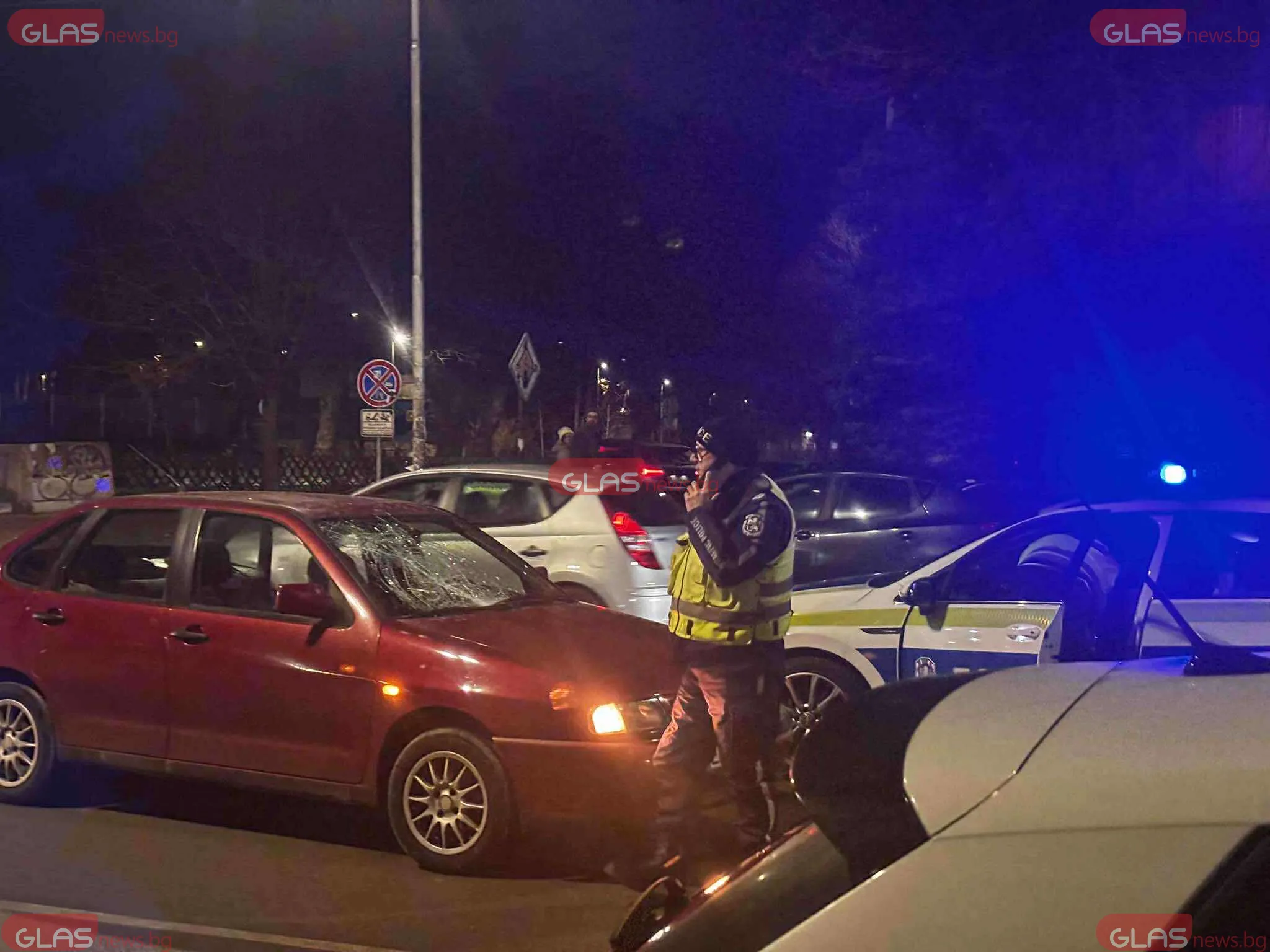 От фрагментите, с които разполага Glasnews.bg, се виждат съществени материални вреди по автомобила, както и огромно пукнато стъкло, за което се допуска, че е в резултат на удара.