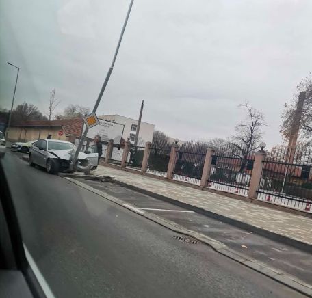 Кола се заби в уличен стълб в Пловдив