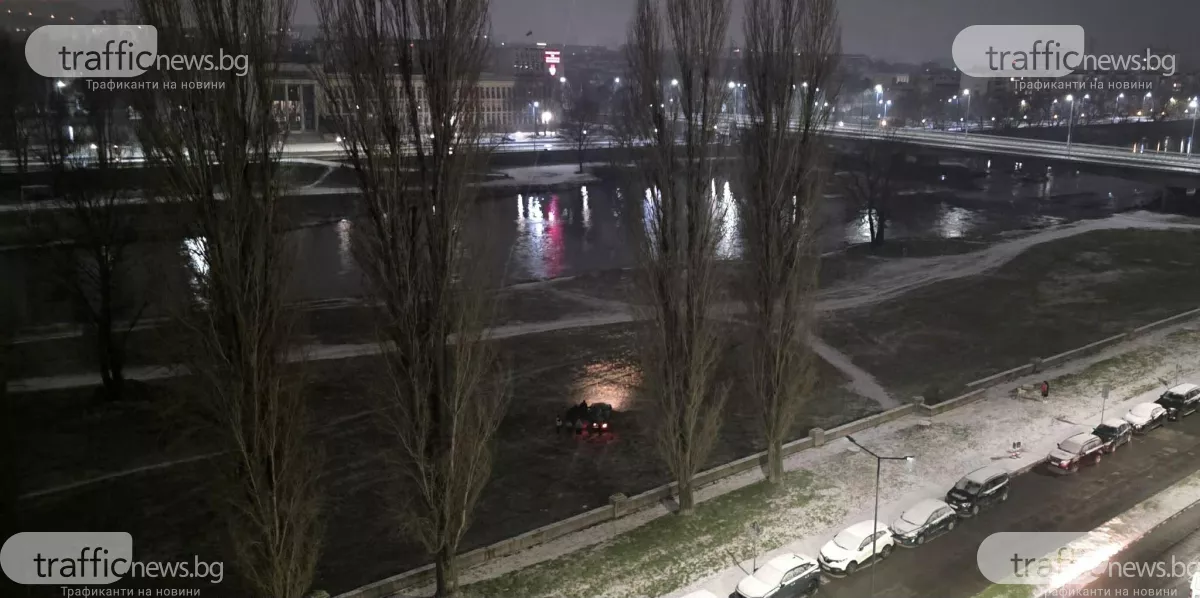 Лек автомобил е затънал в коритото на река Марица късно през нощта нощес. Инцидентът се е случил до моста на УХТ от южната страна на бул. „ Марица “ в Пловдив. За това алармираха читатели на TrafficNews.