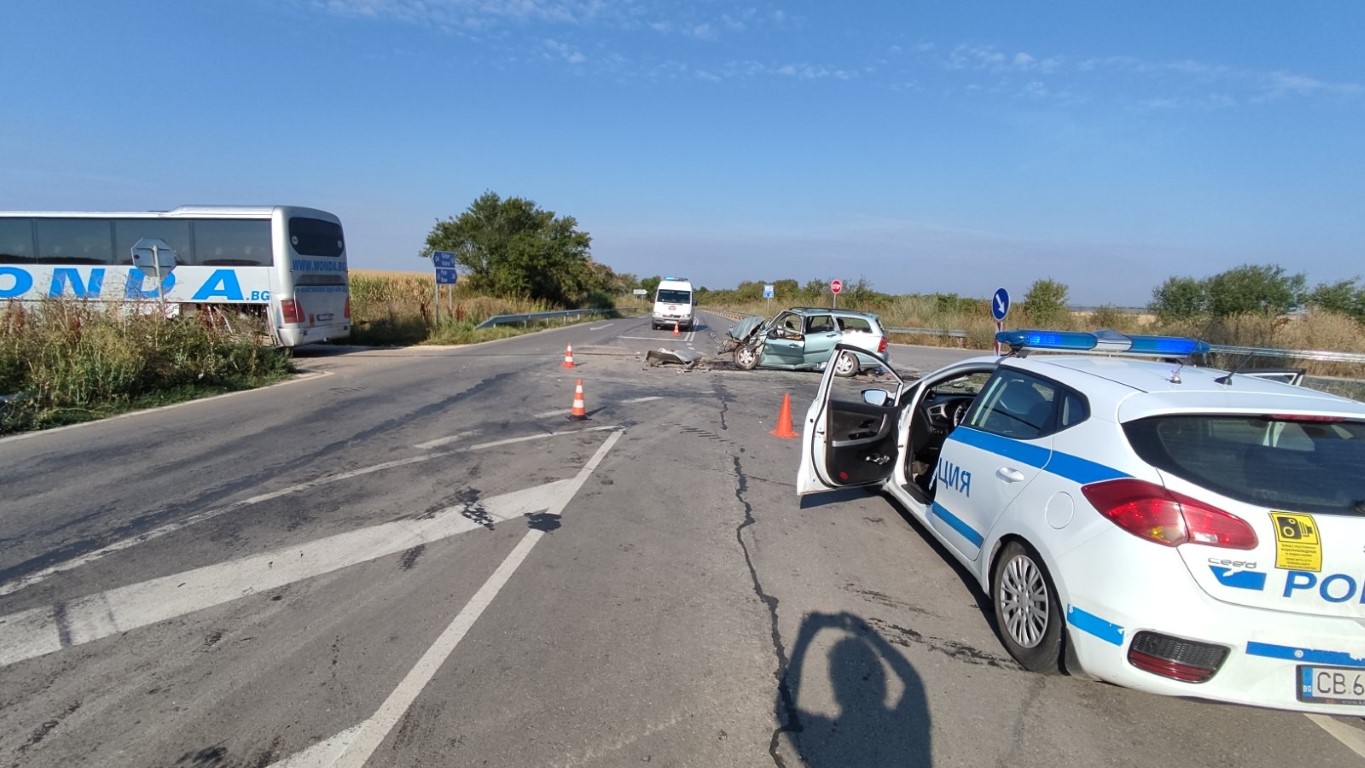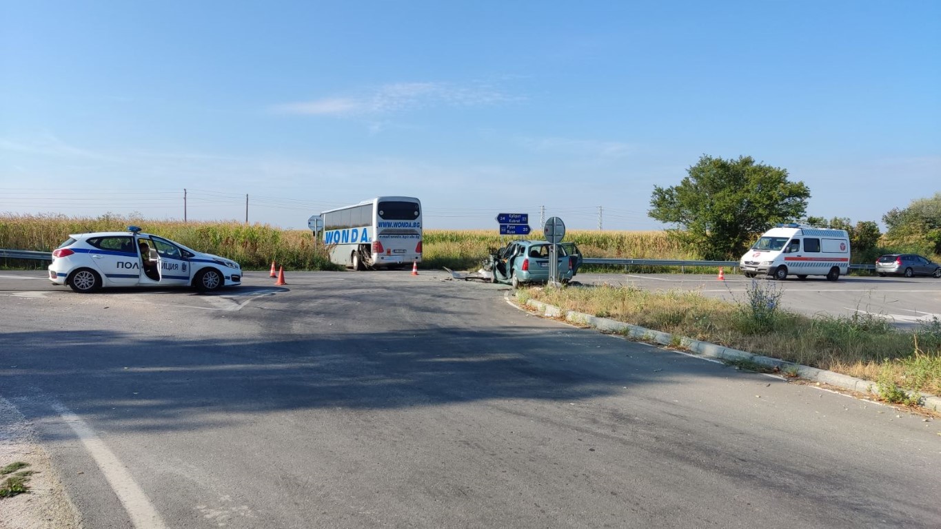 Автобус и кола се блъснаха край Русе, има пострадал СНИМКИ
