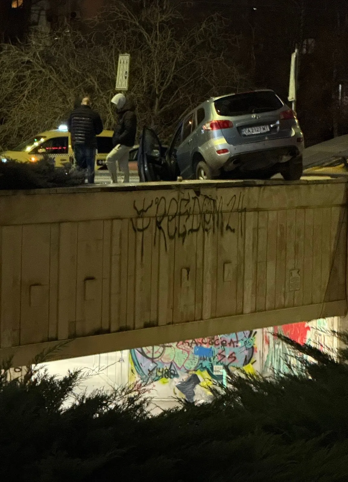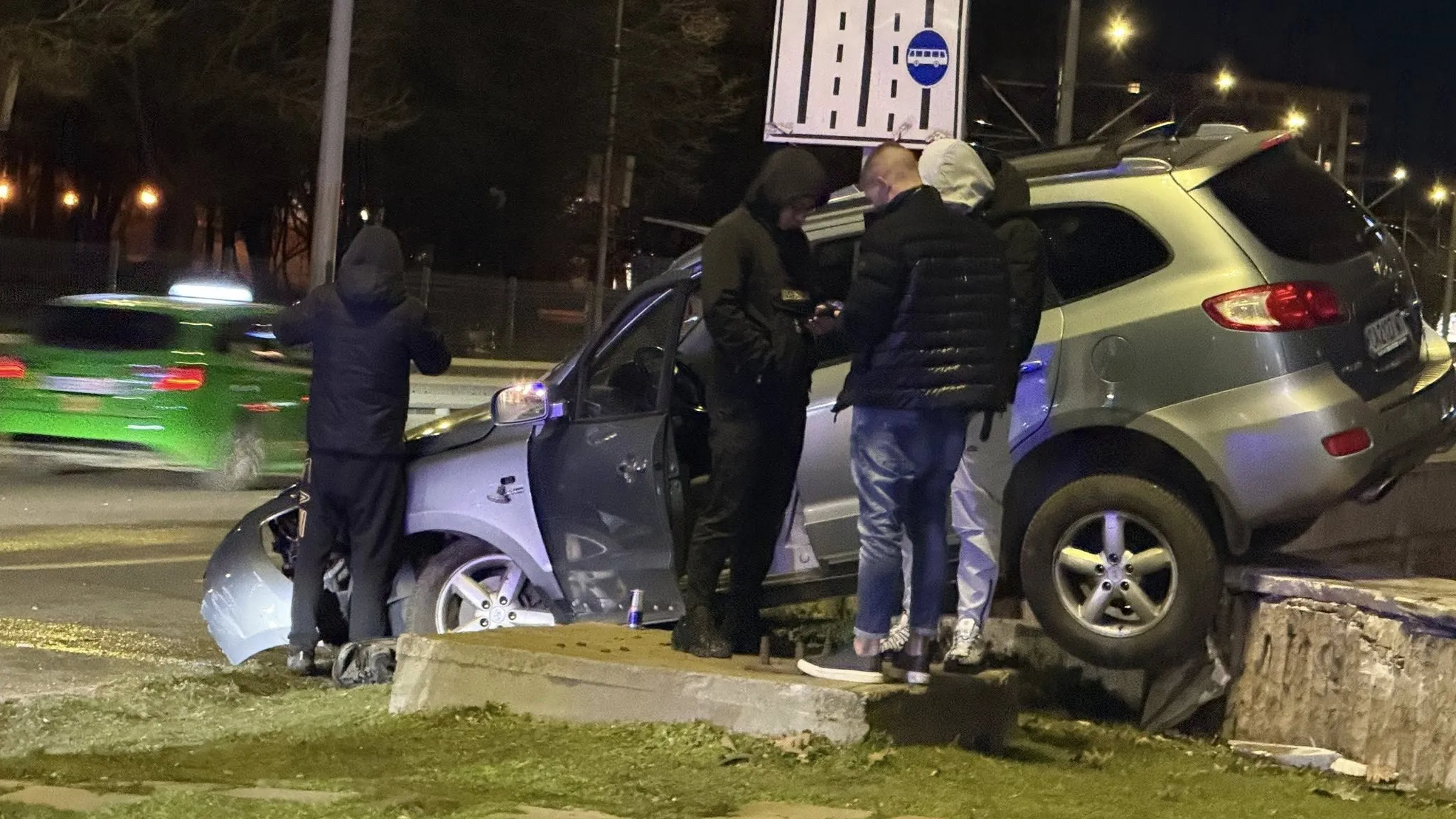 От споделени в мрежата фрагменти излиза наяве, че возилото е излязло отвън платното за придвижване, врязвайки се в парапетите на подлеза.