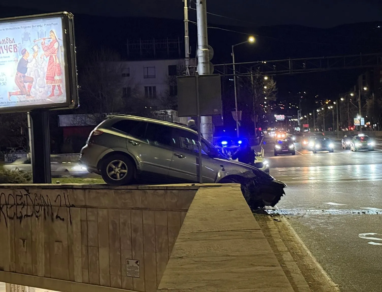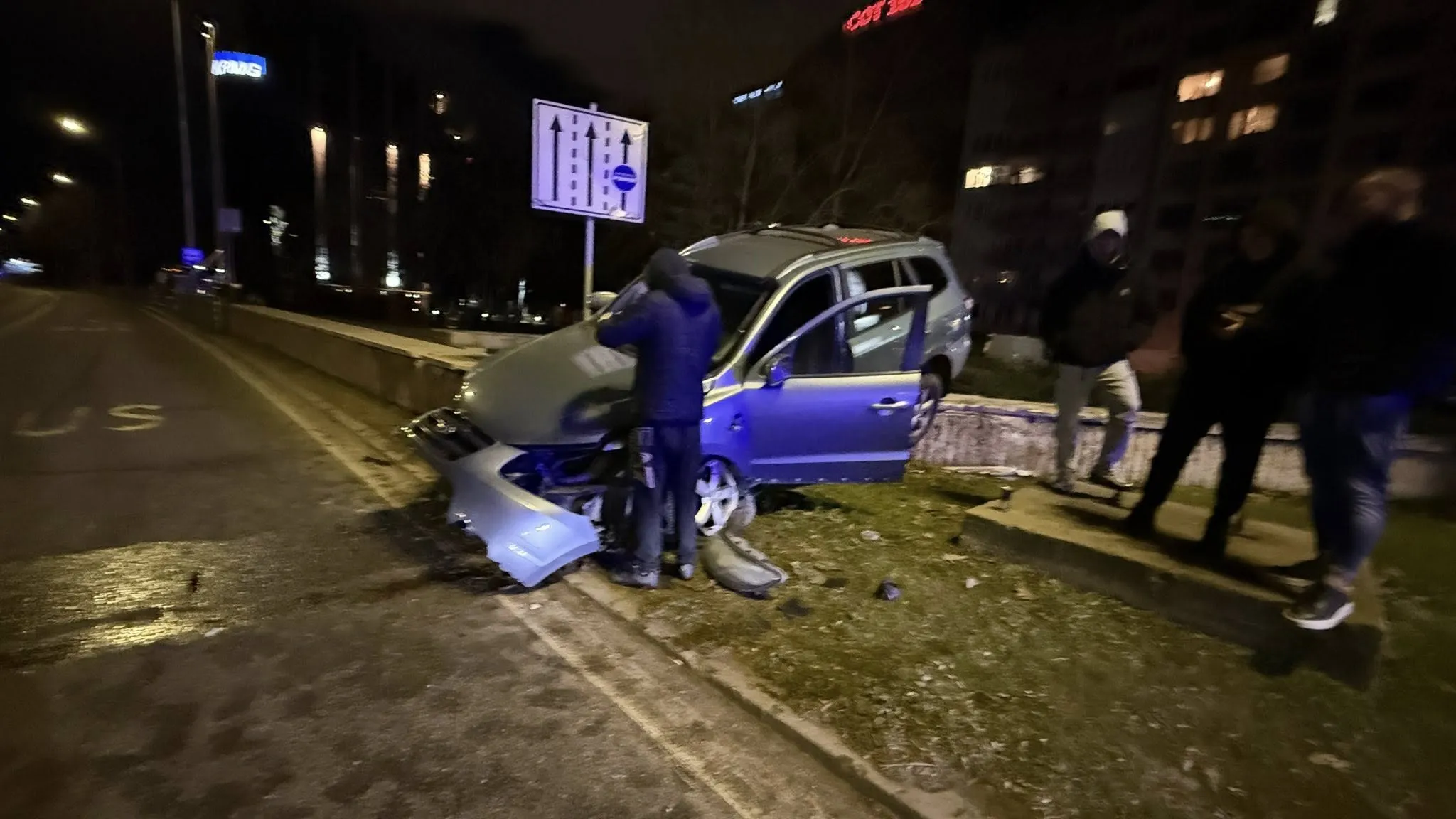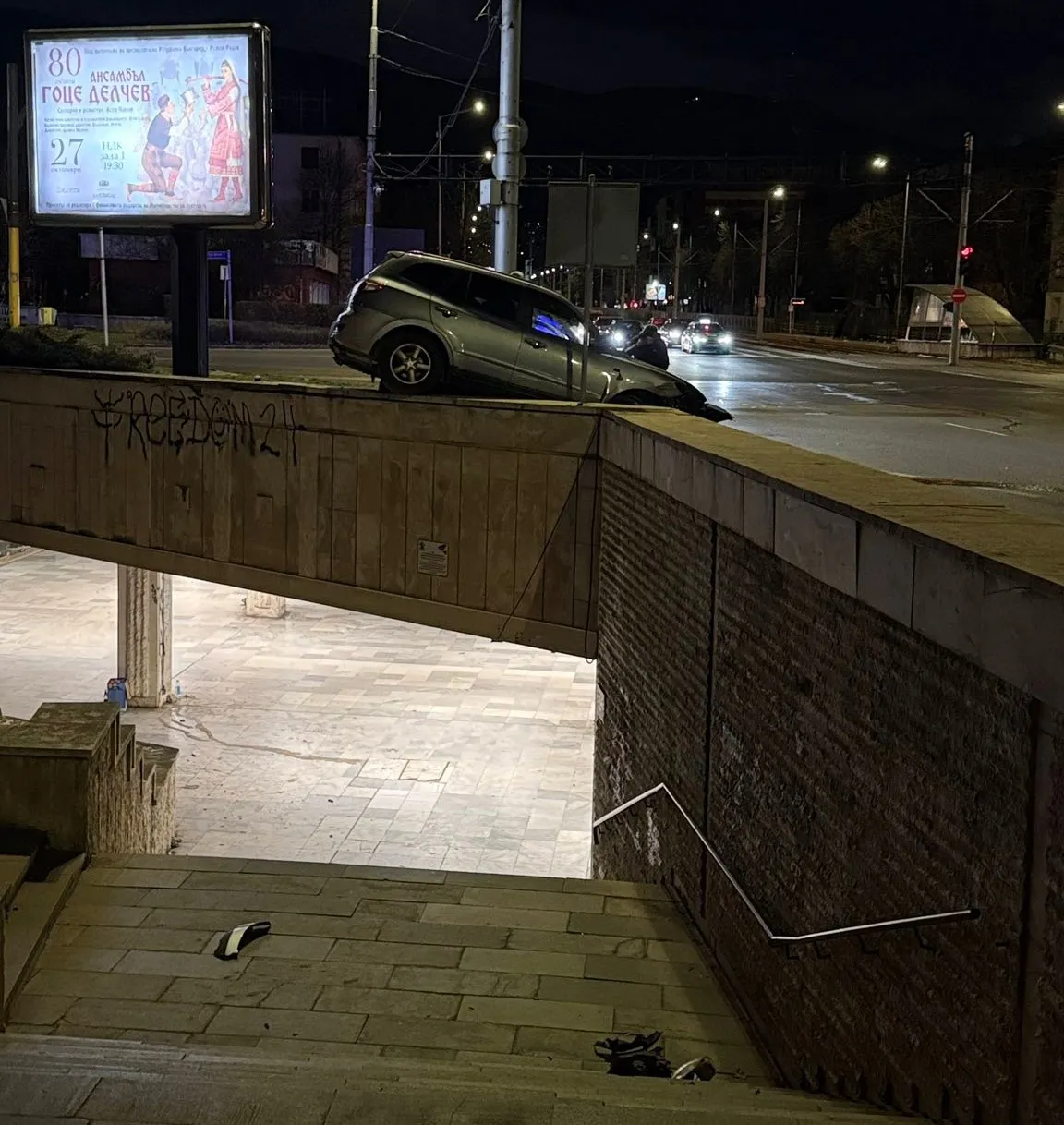 Среднощна катастрофа: Кола се вряза в столичен подлез СНИМКИ