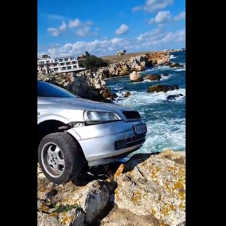 Лек автомобил Опел е затънал на скалите на до с. Тюленово. Колата безусловно е на ръба на една от скалите.