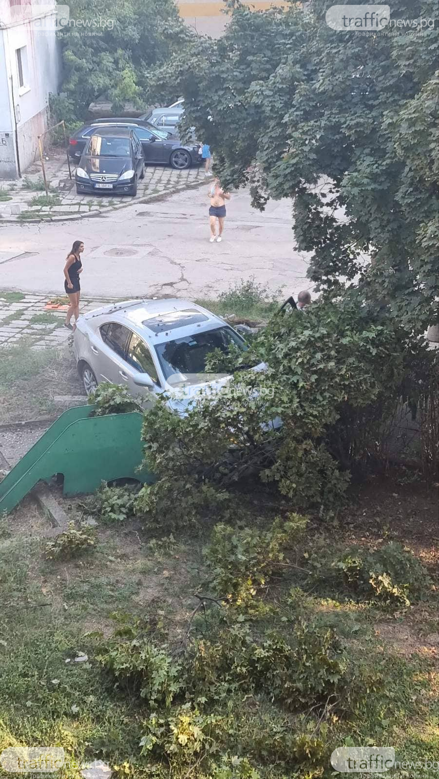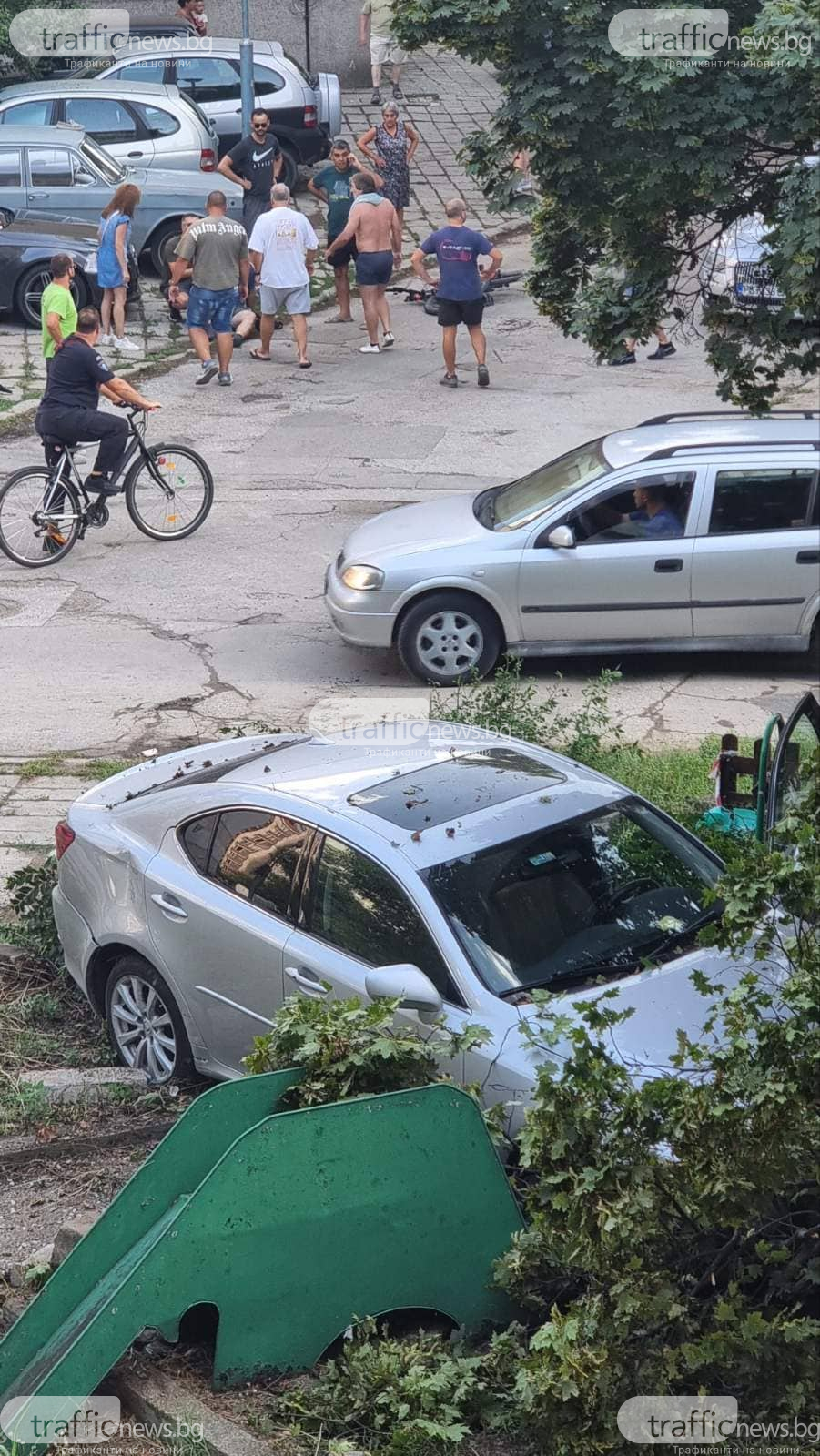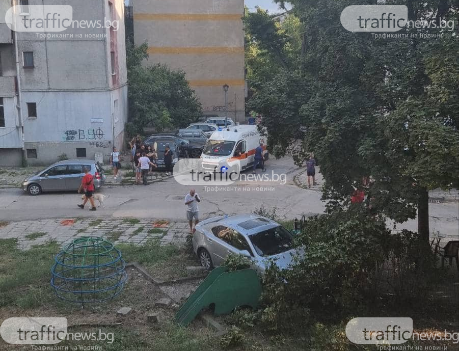 Кола помете колоездач и се вряза в детска площадка в Кършияка