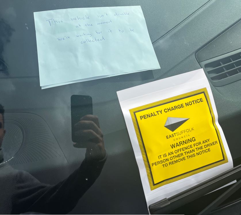 Друг водач също е бил санкциониран с £200, когато от колата му е осъществена кражба. Свалени са ауспуха и катализатора, заради това индивидът не е съумял да потегли.