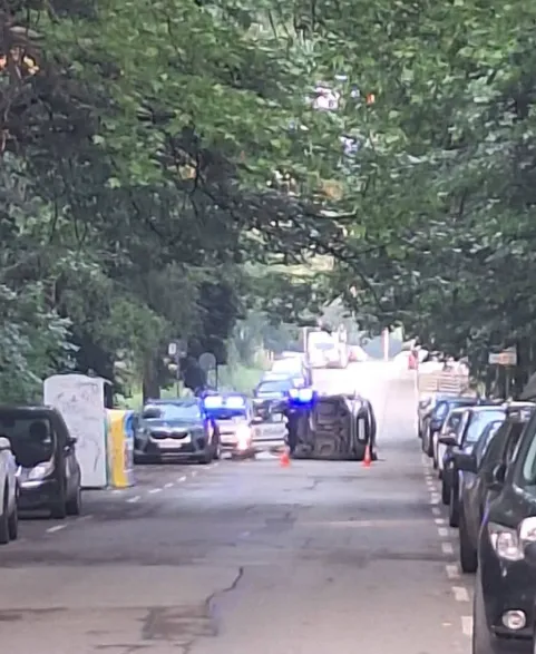 Кола се обърна странично в София СНИМКИ