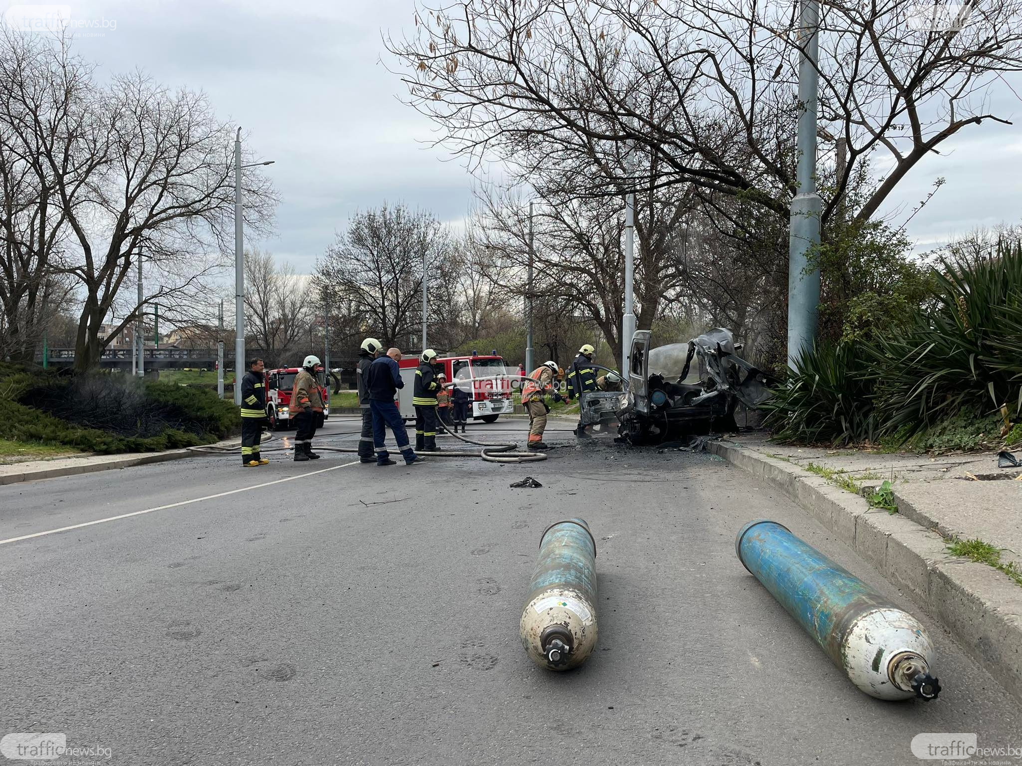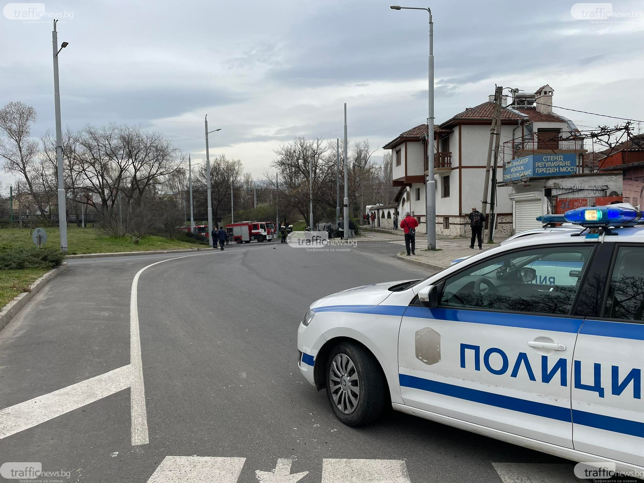 Шофьорът е в контактен, като сега се преглежда от медици на място. Полицейски екип е блокирал правата придвижването от квартал Смирненски към Коматевския възел.