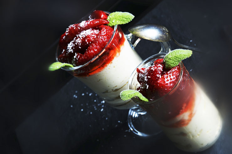 Лек като облак, пресен като заран или просто яйчен мус. Вкусът му е стипчив и звънлив поради лимона, а маринованите ягоди го трансформират в хубав, благоуханен и неудържим летен десерт. Използвах 6 яйца, 100 г захар, щипка сол, 2 лимона, 200 г течна сметана, ванилия. За ягодите - 300 г ягоди, нарязани на ситно, захар на усет, 2 с. лъжици ликьор. Как го направих: В дребна тенджера разруших 3 цели яйца, 3 жълтъка, 3/4 чаша захар, сол, сок и кората на лимоните. Готвих на междинен огън като бърках непрекъснато, до момента в който се сгъсти. Претрих през цедилка, покрих с фолио и оставих в ледник. Може да се направи ден или два авансово.