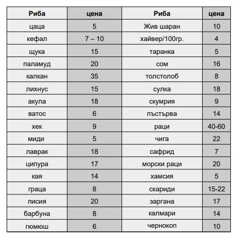 Най-предпочитаната риба за варненци си остава вкусния чернокоп, който можем да си закупим от варненския пазар за 15- 20 лева./ кг. Сафридът можем да намерим на цени от 7-8 лв/кг.
