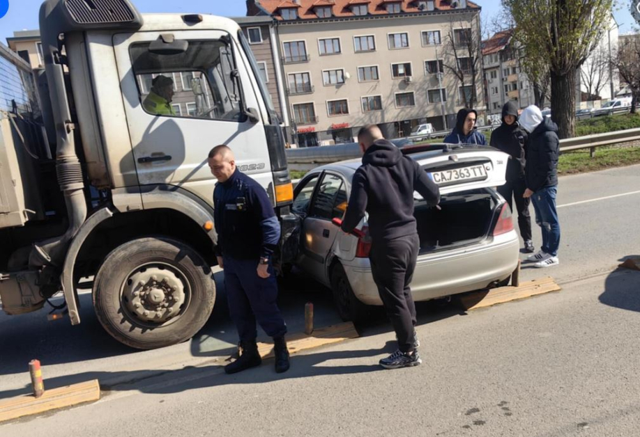 Ударили са се кола и камион на бул. " Сливница " в посока " Сточна гара ". Инцидентът е преди ул. " Г. С. Раковски ". Лекият автомобил е завъртян на пътното платно.