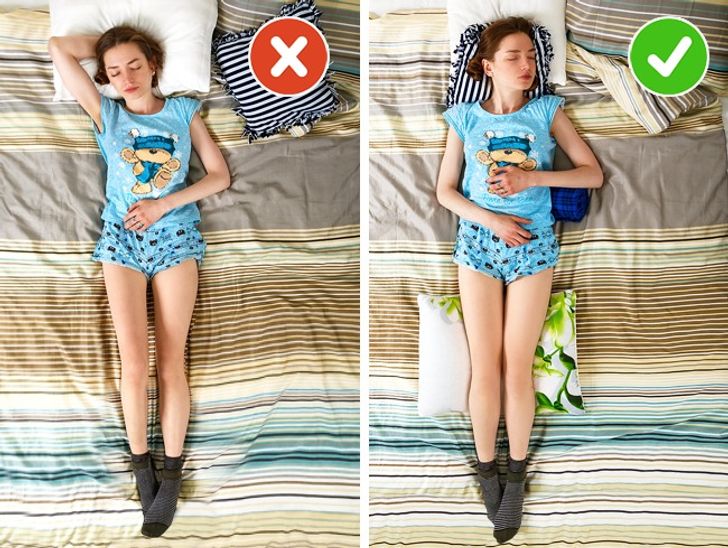 В случай на болки в гърба и ставите поставете дребна възглавница под врата, огромна, само че плоска възглавница под коленете и усукана забрадка под долната част на гърба. Той ще поддържа гръбначния дирек и ще осигури нормален кръвен поток.