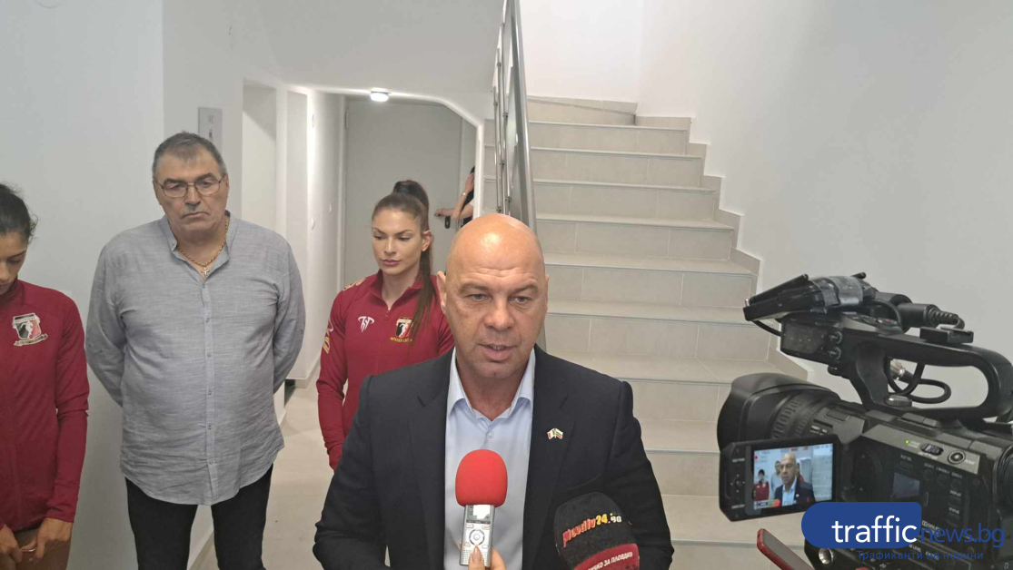 " Преди години, дълго време тук нямаше място къде да се преоблекат състезателите, а това са спортисти на годината, това са нашата пловдивска горделивост, които носят медали. Радвам се на тяхното показване в Рим. Пожелавам доста триумфи на спортния клуб, знаете тук действаме и за реновирането на настилката, с цел да няма травми при потребление на лекоатлетическата писта. Благодаря на компанията реализатор, тъй като с предходните имахме огромни компликации. Това е едно от оборудванията, което е правено най-дълго. ", съобщи кметът Костадин Димитров.