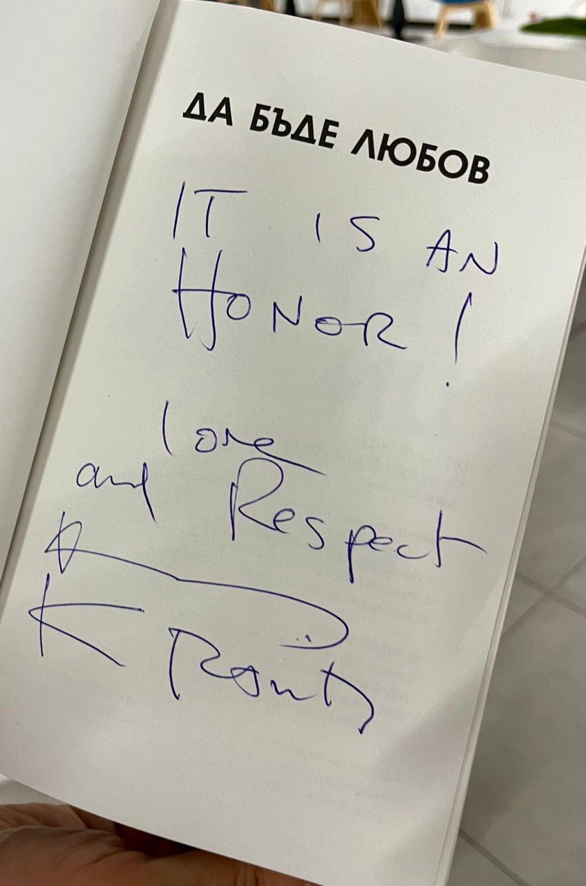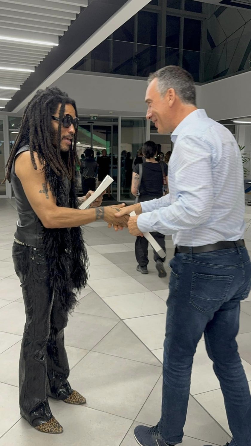 Лени Кравиц бе посрещнат от кмета на Бургас Димитър Николов, който подари на рок звездата биографията му на български и получи подпис върху книгата.