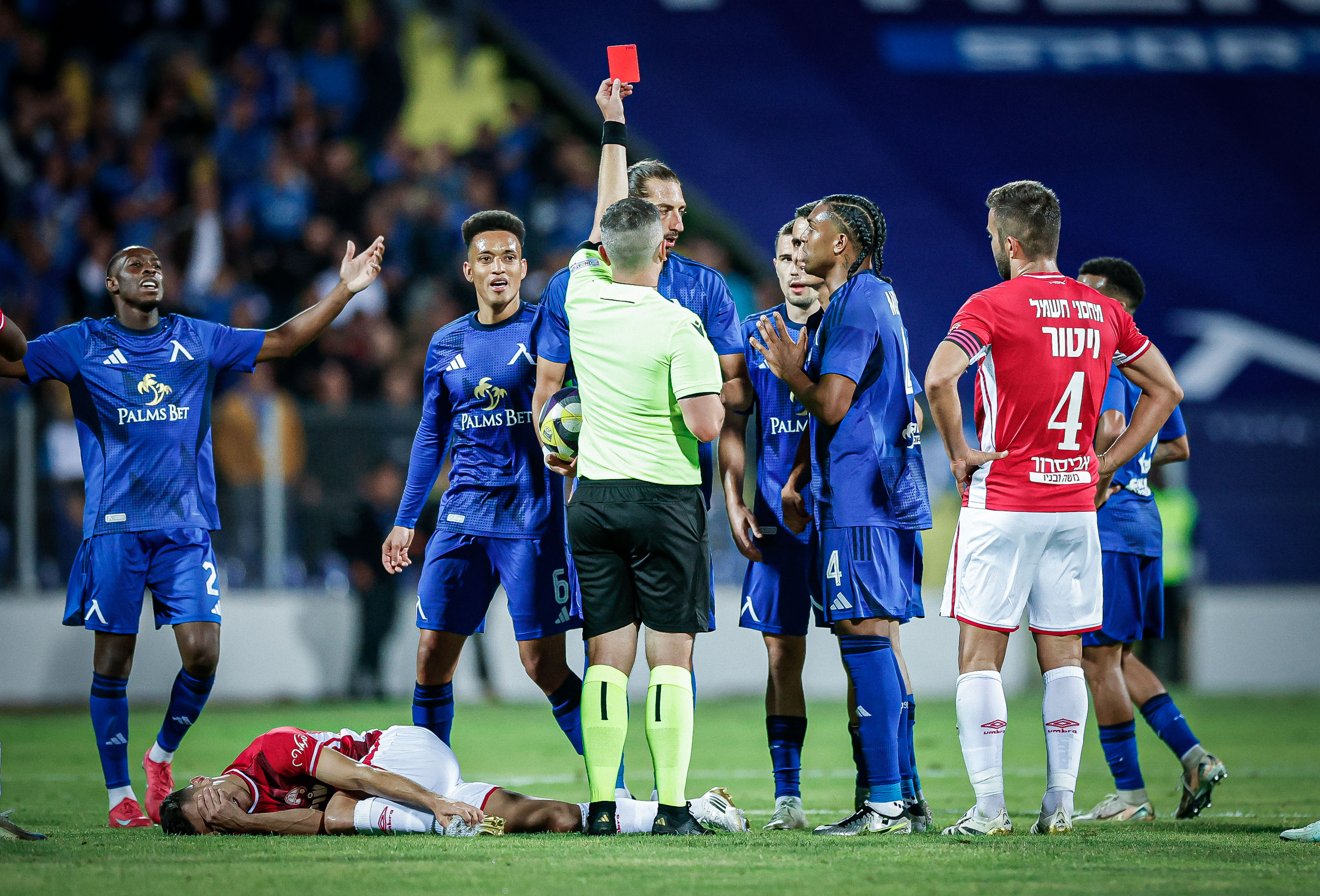 В последните 4 минути от продължението и гостите останаха с понижен състав. В четвъртата минута от добавеното време Елиел Перец получи втори жълт картон за нарушаване против откъсващия се Мустафа Сангаре. Нарушението бе задоволително ясно за съдията, който не се поколеба да извади и аления картон.