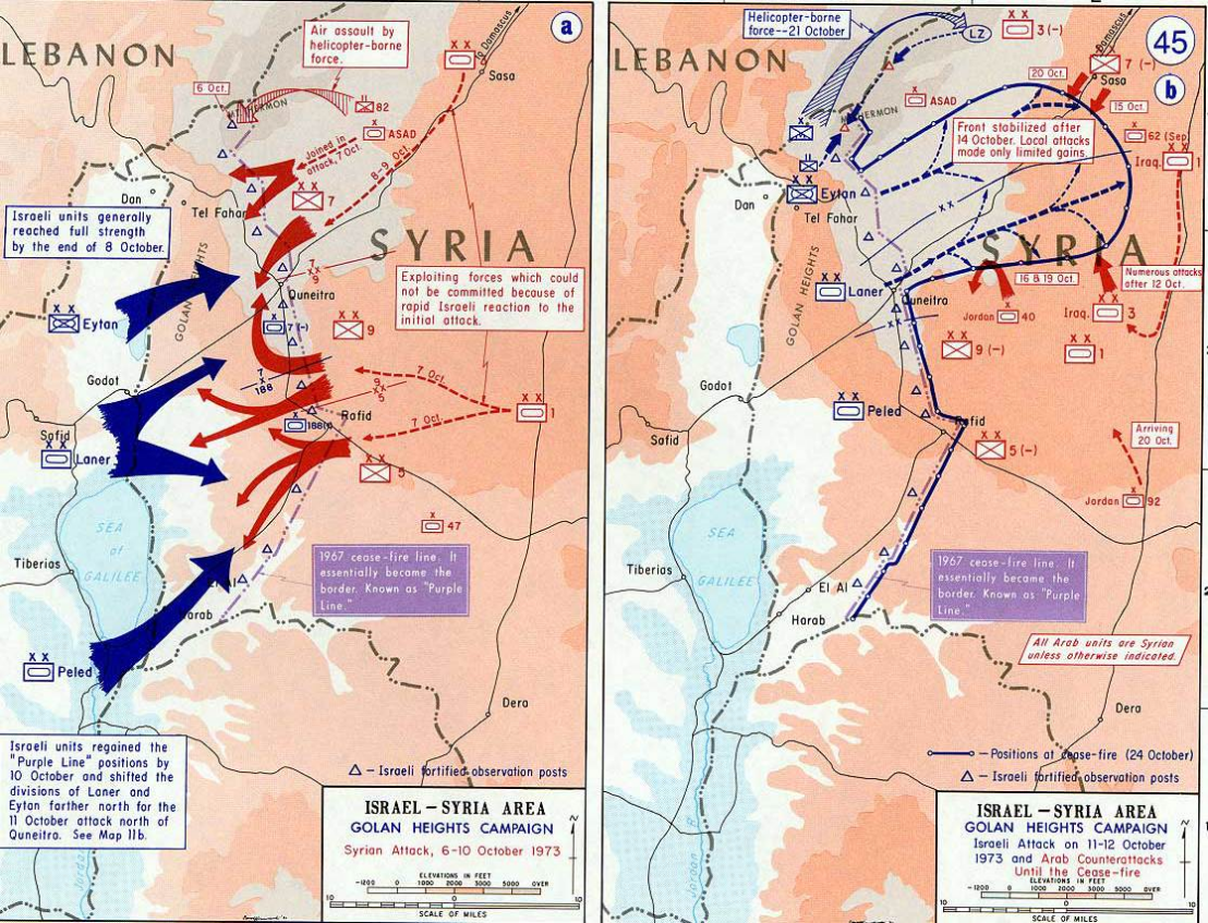 Никой не е обърнал внимание и на обстоятелството, че единствено дни по-рано, Съюз на съветските социалистически републики изтегля своите жители от Дамаск и Кайро. По време на това стълкновение ще стане ясно, че Сирия идва със 1400 танка против едвам 177 израелски. Единственото избавление е, че командата за офанзива е дадена единствено час по-рано на сирийските капитани, които по това време не са съумели да изпратят машините за разчистването на мини.