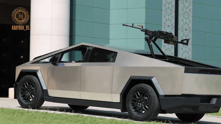 Лидерът на Чеченската република Рамзан Кадиров популяризира видео, на което се вижда по какъв начин той ръководи електрически пикап " Кибертрък " на компанията " Тесла " с инсталирано върху него оръжие, което наподобява на картечница, съобщи Ройтерс.