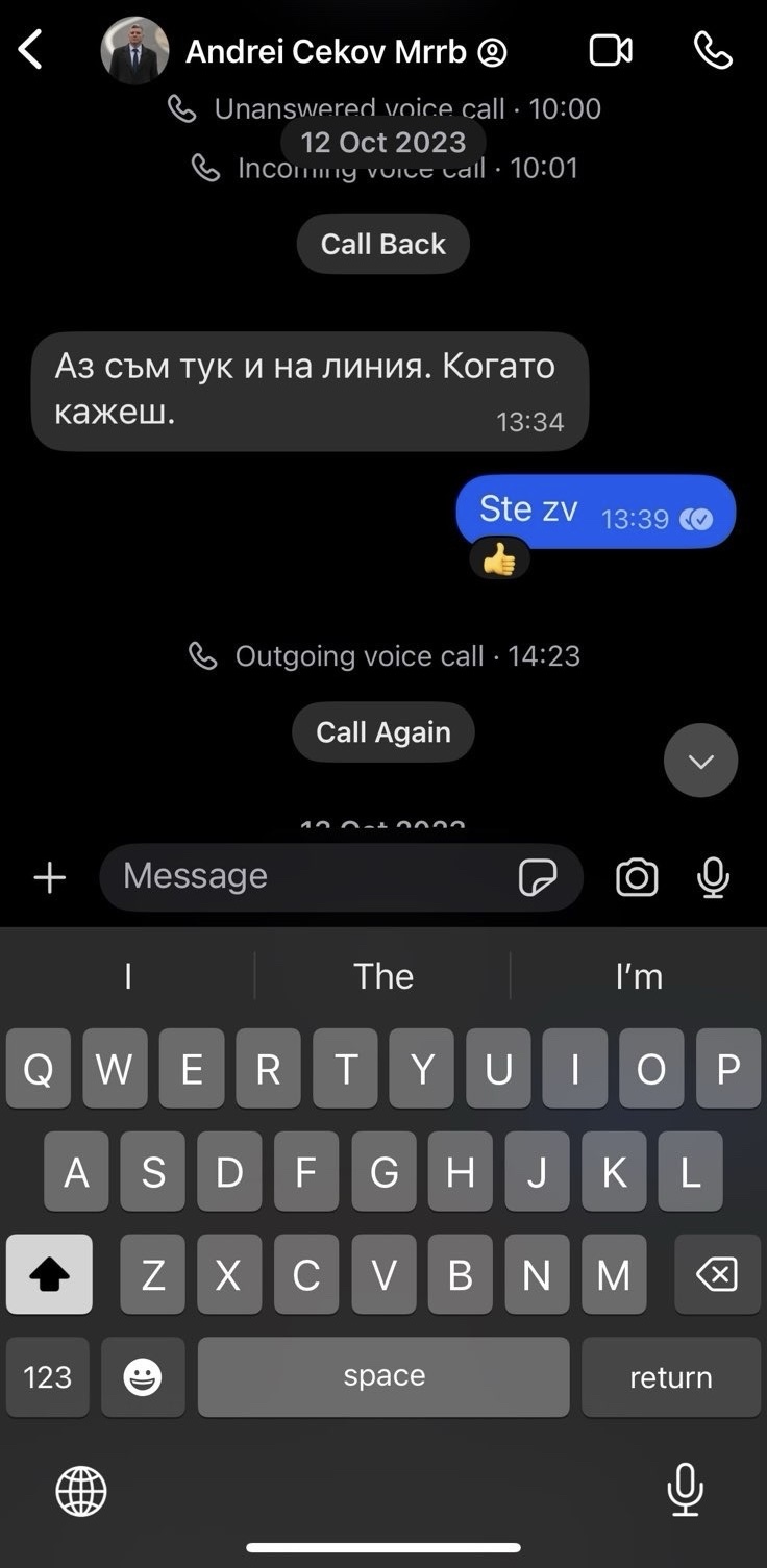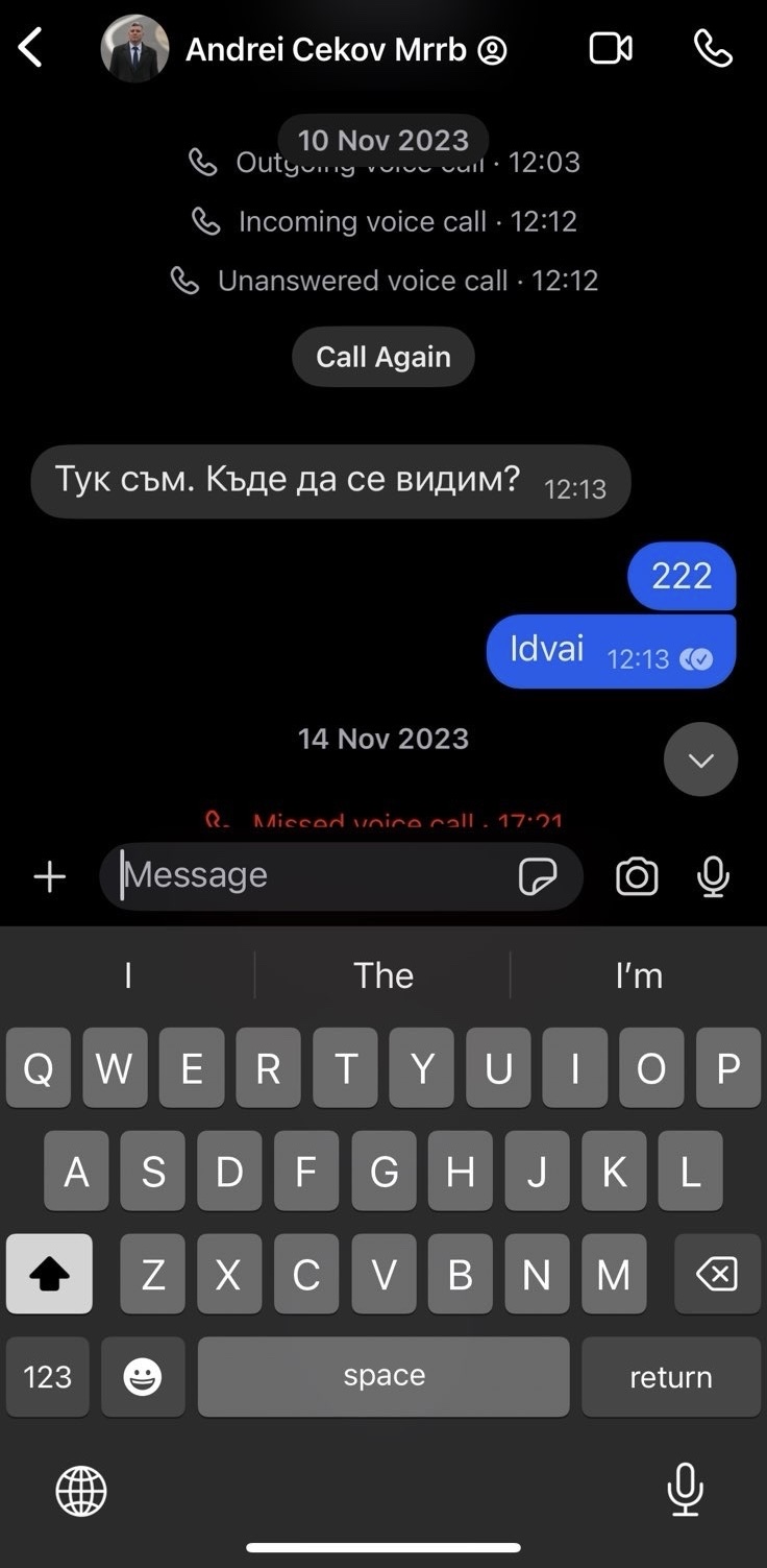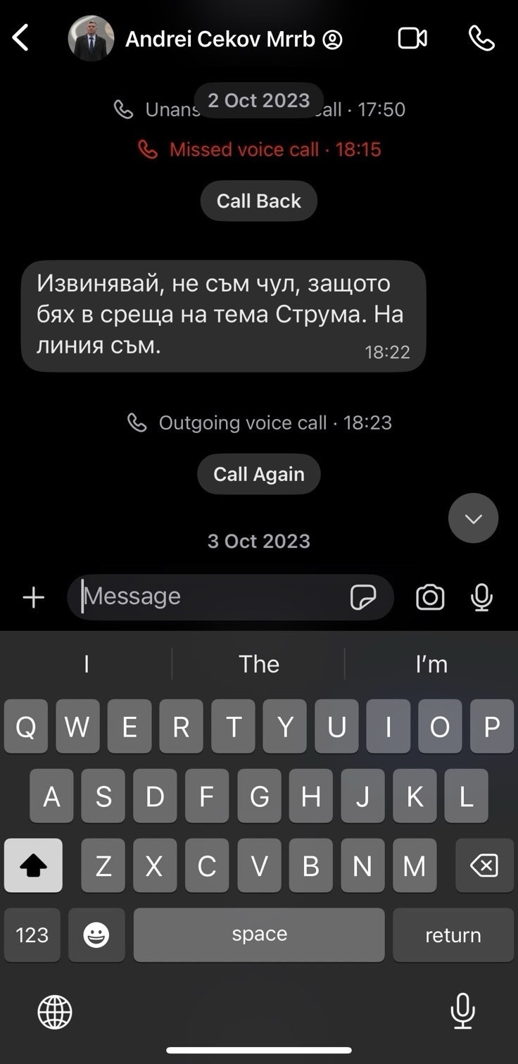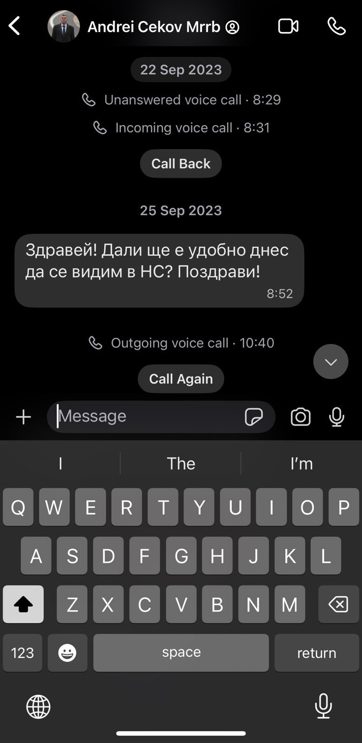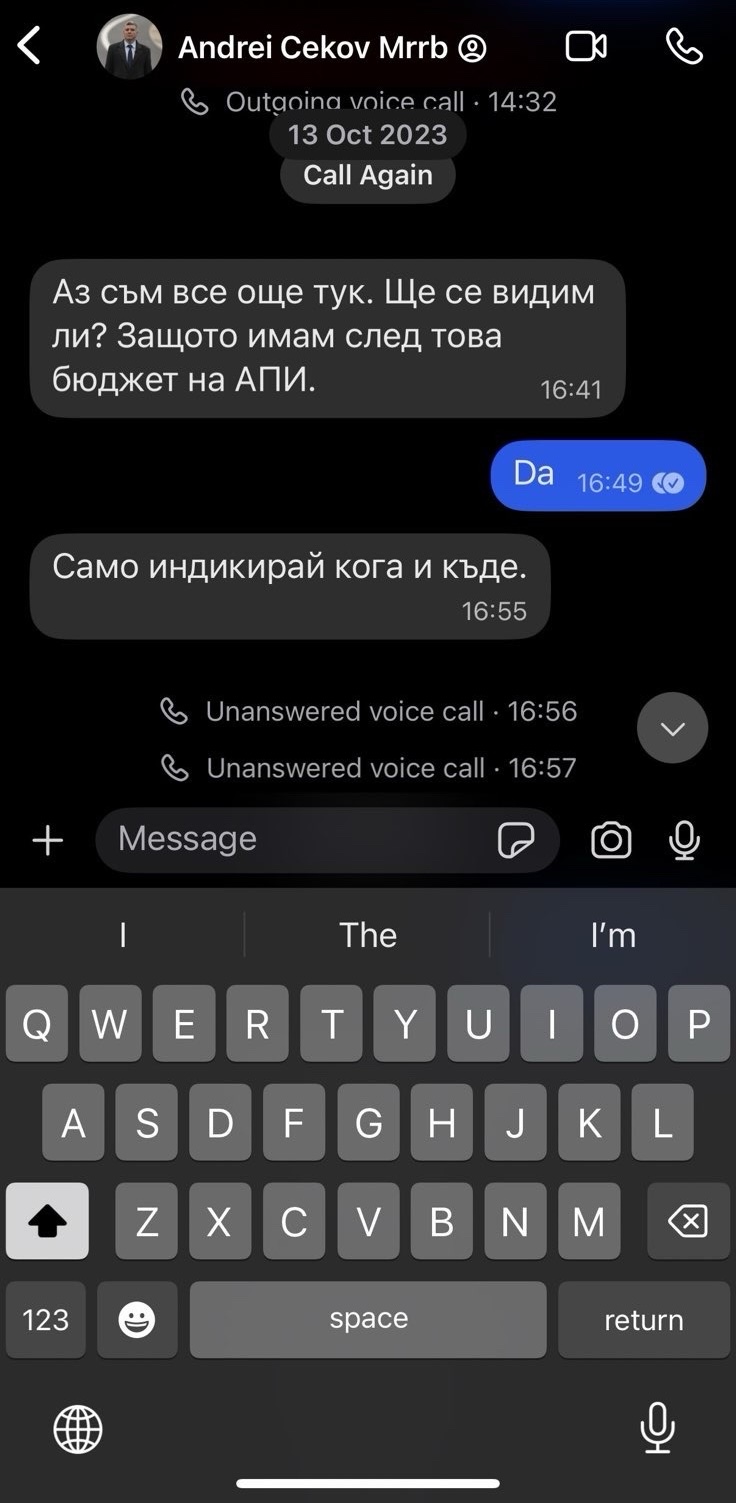 Лидерът на „ Движение за права и свободи – Ново начало ” популяризира до медиите фотоси от чат с Андрей Цеков от ПП-ДБ. Делян Пеевски твърди, че го е търсел за срещи. Преди ден Пеевски разгласи, че брокерът на всички пътища у нас е точно Цеков и фамилията му.