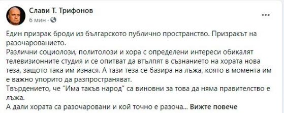Слави Трифонов за разочарованието и очарованието на неслучилия се кабинет |