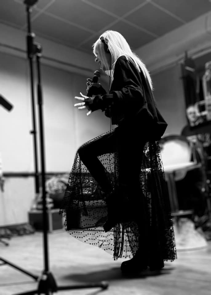 Лили Иванова репетира за концерта в Бургас, обхваната в черна дантела.