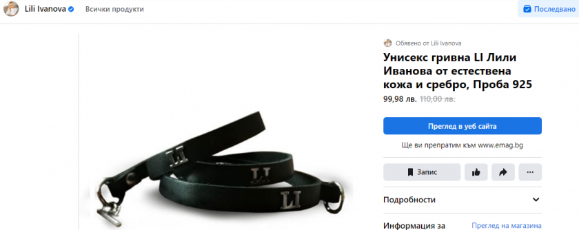 Близо 100 лева коства дребна гривна в уеб страницата на примата на естрадата, а за 25 лева се продава черна тениска с нейната физиономия. На уеб страницата си Лили продава и билети за турнето си както и свои музикални записи.