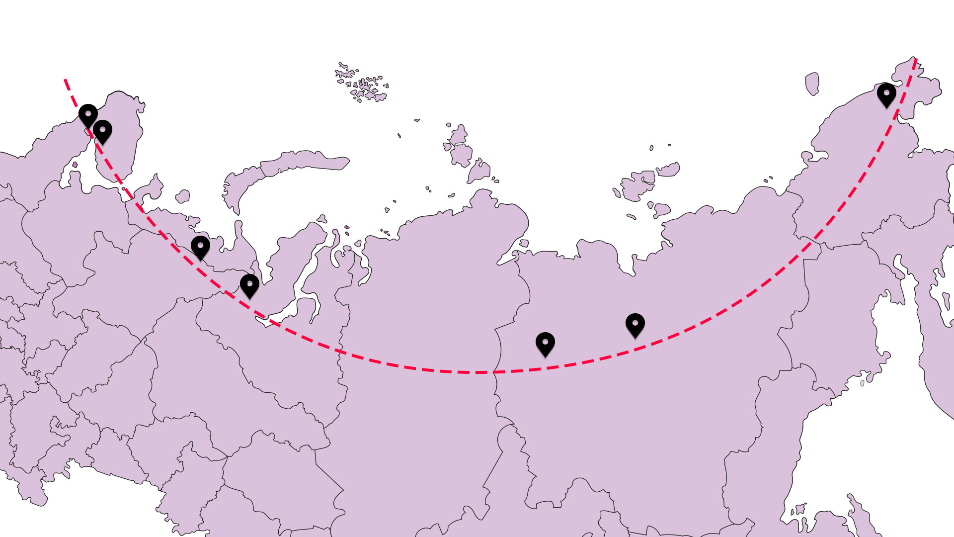 Линията на Северния полярен кръг пресича страната от запад на изток, започвайки от границите на Карелия и Мурманска област и приключвайки в Чукотка.