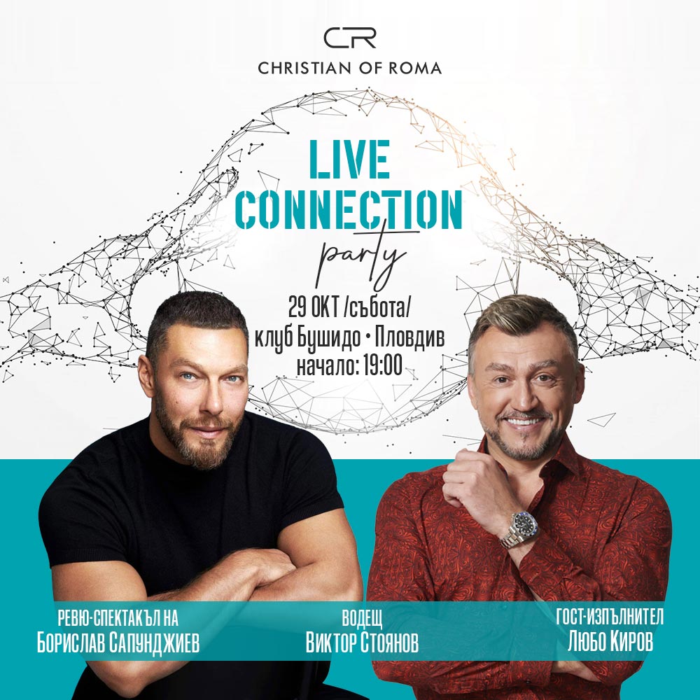 На 29-и вечерта, в събота, посетители и фенове на фризьорското изкуство ще станат очевидци на героичен фешън театър квалифициран от екипа на Академия Christian Of Roma и нейният креативен шеф Борислав Сапунджиев. Изненадващи фешън превъплъщения и ексцентрични модели ще види публиката на сцената на клуб Бушидо в Пловдив. Водещ на грандиозното събитие - Live Connection Party ще бъде звездата от най-романтичното ТВ реалити Виктор Стоянов, а музикалният посетител на вечерта е поп-легендата Любо Киров.