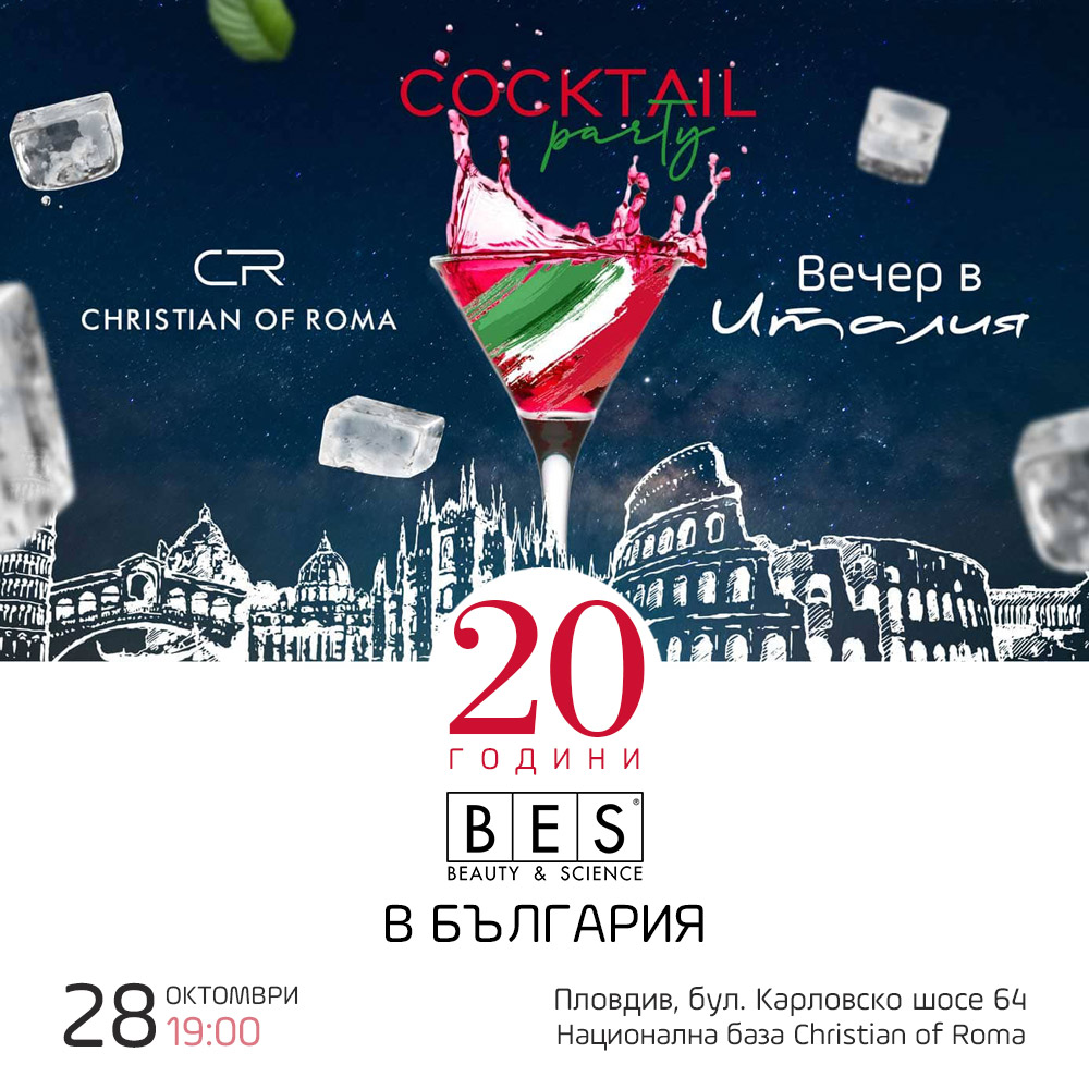 Отбелязването на 20 години сполучливо партньорство с италианския бранд BES Milano ще постави началото на празничната част в деня на откриването на обичайното събитие за топ стилисти и фризьори от целия свят. Коктейлно празненство под мотото „ Вечер в Италия “ в новооткритата национална база на Christian Of Roma в Пловдив ще събере другари, сътрудници и клиенти на компанията. Под диригентството на интернационалния арт-директор на BES Milano и най-чест посетител на сътрудниците си в България – Саверио Палма, българския екип на марката ще показа извънредно фешън ревю. Водещият Валентин Асенов ще придвижи посетители и аудитория в приказна Италия.