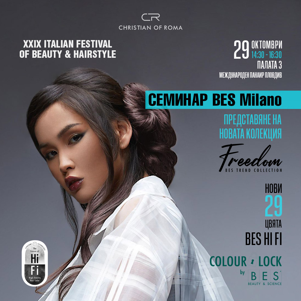По-рано, същия ден, международно известният фризьор Саверио Палма ще показа последната си сбирка „ Freedom “ по време на механически семинар в Конгресен център на Международен панаир Пловдив от 14:30 до 16:30 часа. 29 нови цветове за коса ще презентира интернационалният арт-директор на BES Milano. Неговата най-нова сбирка от прически с впечатляващи багри „ BE HI FI “ предизвика интереса на професионалните фризьори с предлагането на естетически смели решения и на лекотата в практическото им реализиране.