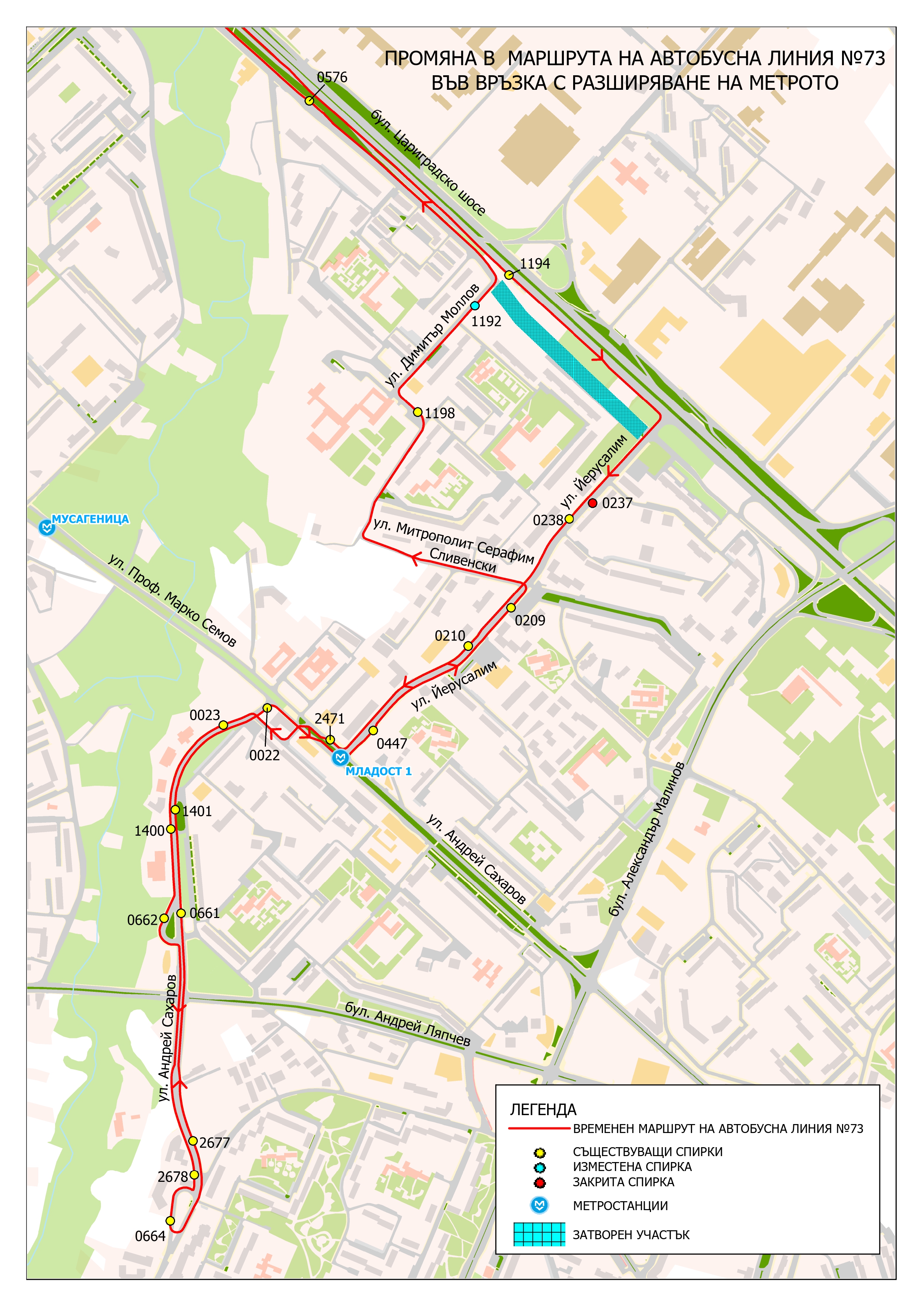 Тролейбусите от линия № 5 и рейсовете от линия № 73 ще стопират на всички съществуващи автобусни и тролейбусни спирки в променените сектори на маршрутите.