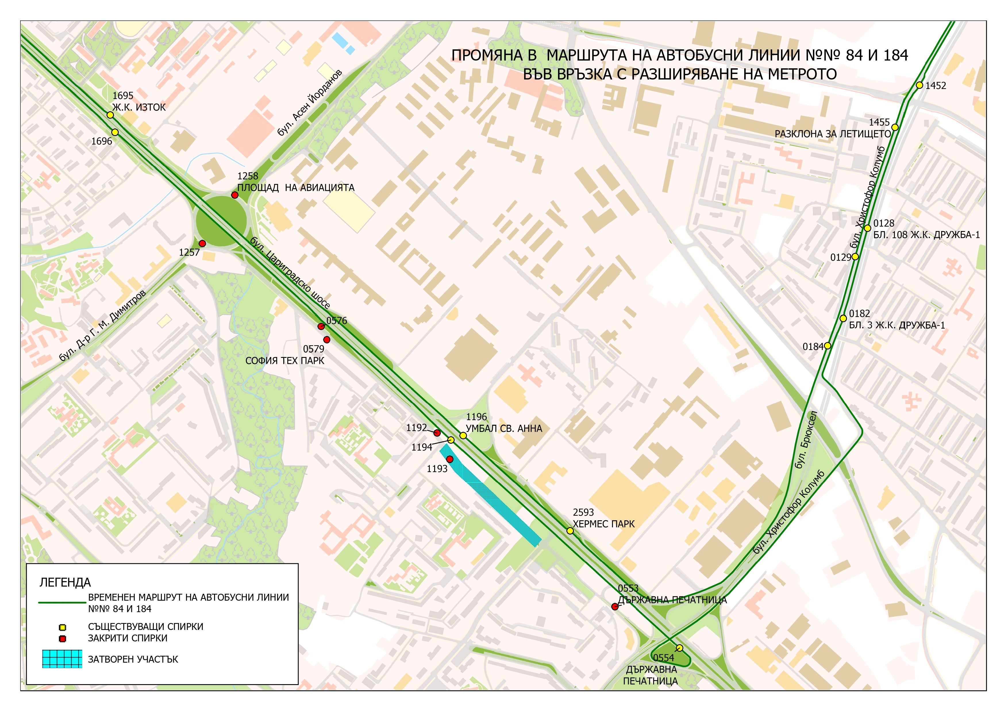 Спирка „ УМБАЛ Св. Анна “ в посока център ще се измести на ул. „ Димитър Моллов “, на 40 метра преди локалното платно на бул. „ Цариградско шосе “.