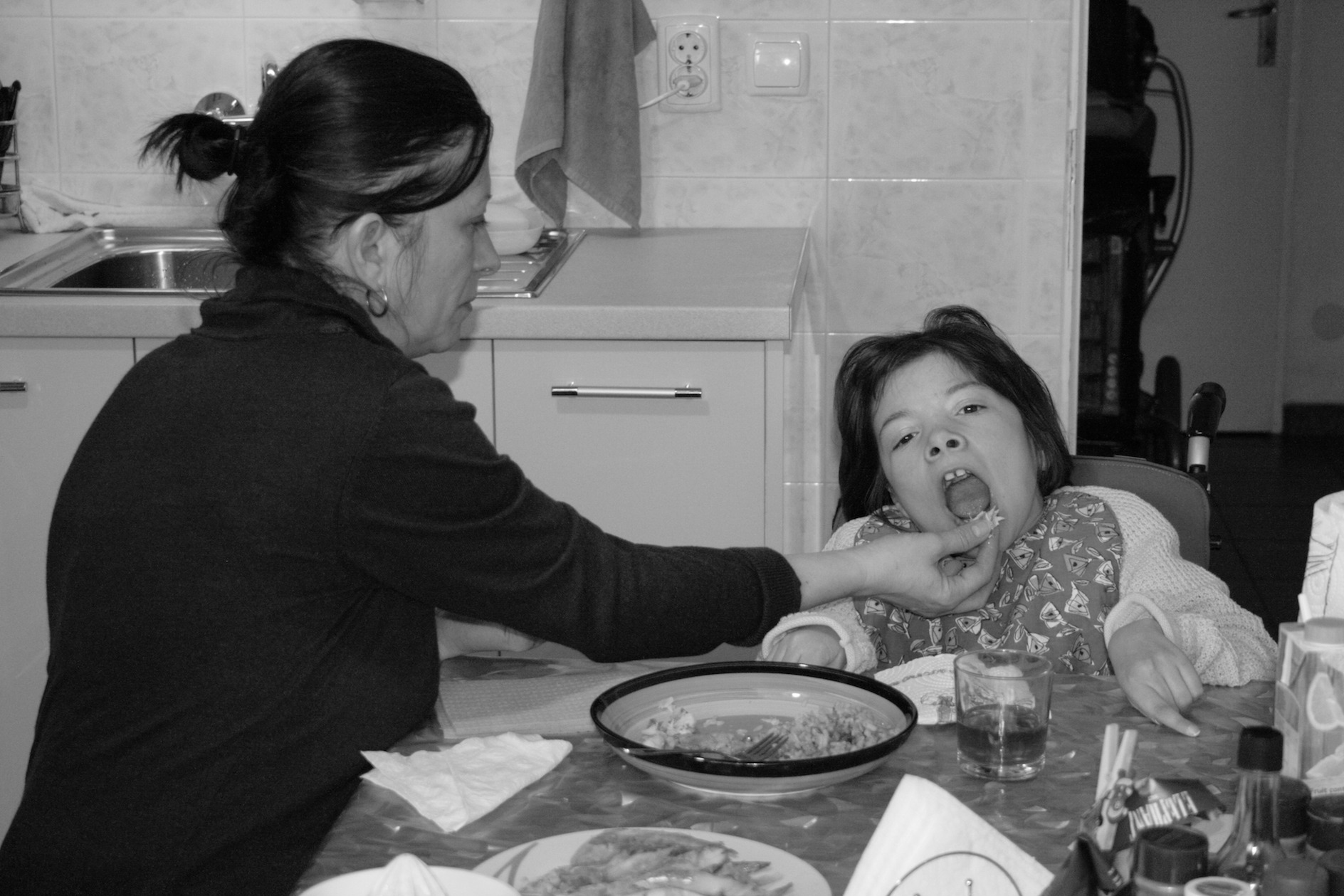 „ Сутринта за нас стартира в 7 часа. Сменяме памперси, подготвяме тоалета на Лори, закусваме и тръгваме. Благодарна съм доста за инвалидната количка, направена особено за потребностите на Лори, която доста облекчава всекидневието й. Онова, от което има неотложна потребност в България, е да се основат повече дневни центрове за деца със специфични потребности. Просто да знаеш, че има място, където 3-4 часа някой може да грижи за детето ти. Защото от време на време е непостижимо и безумно да се справяш с всичко по едно и също време ”, споделя Илияна.
