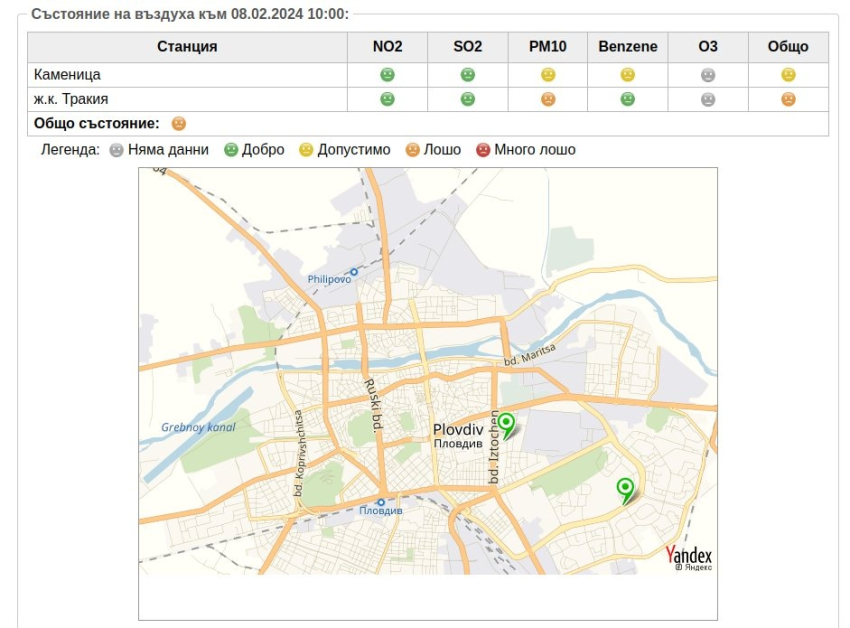Лошо е положението на въздуха в Пловдив. Това демонстрират данните на двете измервателни станции за качеството на въздуха в действително време.