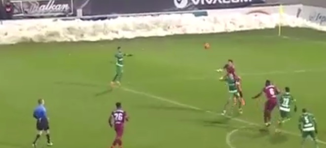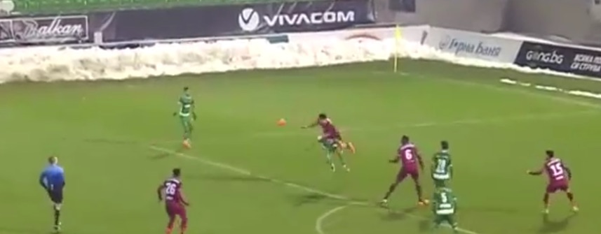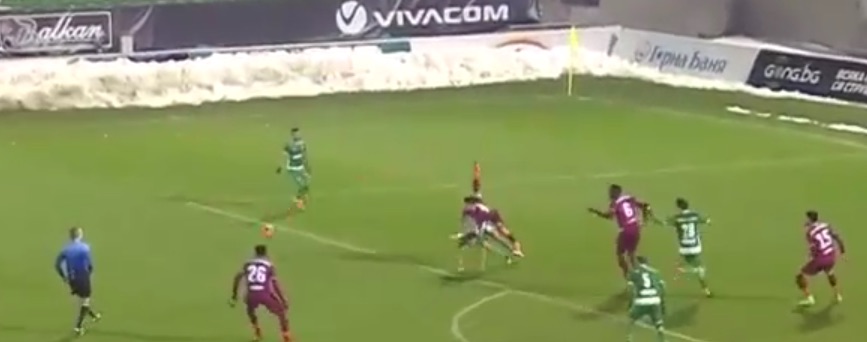 Ето каква е гледната точка на съдията, който има отлична видимост към обстановката (снимки 1 и 2 са преди играчът на Септември да играе с топката, а 3 и 4 са след играта с топката):