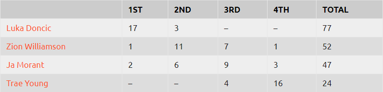 В изследване, направено от ESPN, 20 члена от клубовете в НБА трябваше да класират четиримата най-изявени млади играчи, посредством които биха градили тима си. Без изненада точно Дончич завоюва вота със 77 точки, като за него гласоподаваха 17 от общо 20-имата участващи. Зад него останаха крилото на Ню Орлиънс Зайън Уилямсън с 52 точки, гардът на Мемфис Джа Морант с 47 и плеймейкърът на Атланта Трей Йънг с 24.