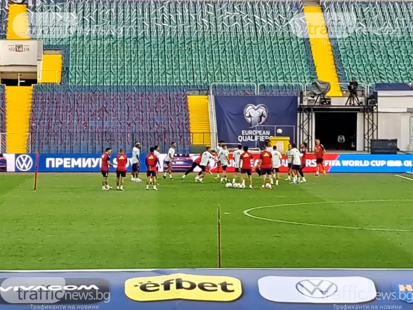 Веднага след конференцията на Илиан Илиев и Кирил Десподов националите организираха подготовка на националния стадион.