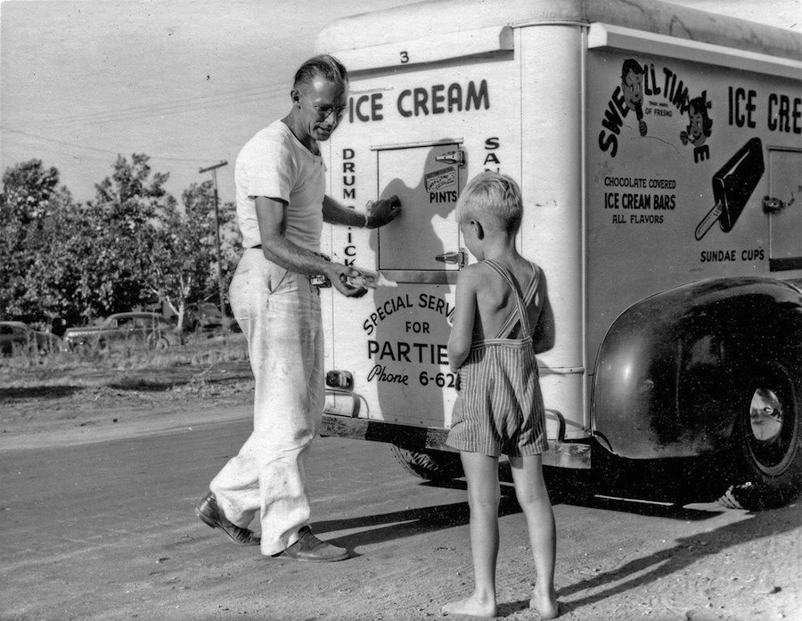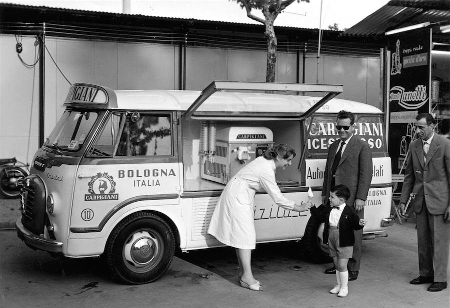 (Gelato served from a Carpigiani-made gelato truck at the Bologna fair in 1958. © Gelato Museum)