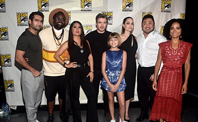 Анджелина Джоли излезе на сцената пред 6500 възторжени почитатели дружно с другите звезди, които ще вземат участие във "Вечните " - Ричард Мадън, Кумаил Нанджиани и Салма Хайек. Филмът за група безсмъртни извънземни ще бъде пуснат на екран през ноември 2020 година
