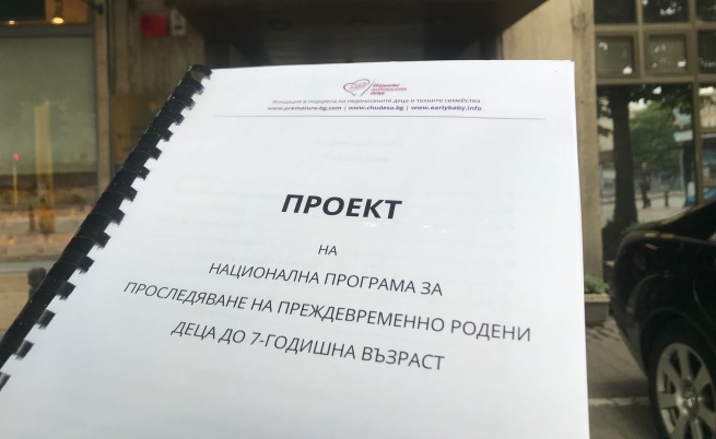 Именно неналичието на национално одобрена стратегия, която да подсигурява провеждането на навременни съвещания и прегледи за недоносените деца от 0 до 7 години, бе основателната причина Фондация “Нашите недоносени деца” да внесе в Министерство на здравеопазването план за Национална стратегия за следене на прибързано родени деца до 7-годишна възраст и рекомендациите си по отношение на нужните законодателни промени.