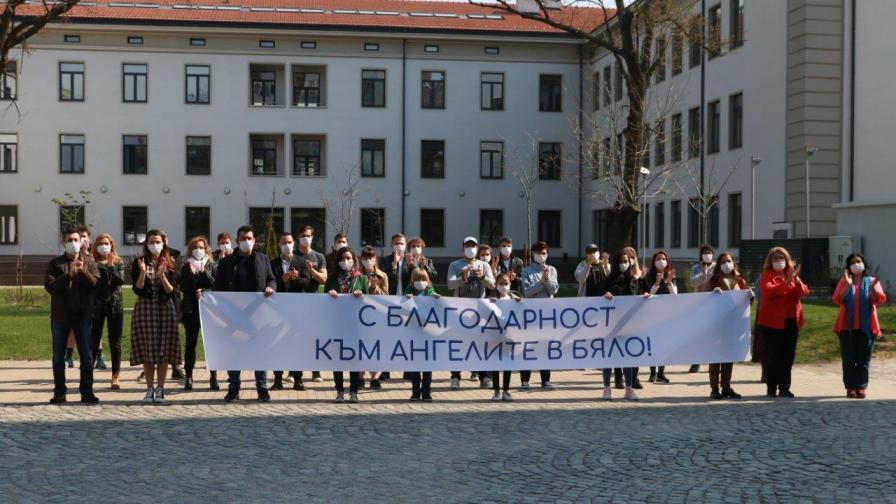 ест на признателност към лекарите и медицинските сестри събра на снимачната площадка актьорския състав на „ Откраднат живот “. „ С всичко сътрудници сме съпричастни към работата на медиците. В този заключителен кадър, актьорите застават в персонално качество, с цел да приветстват хората на първа линия, които всеки ден се борят за човешкия живот “, разясниха пред камерата на "На Кафе " продуцентът Евтим Милошев и режисьорът Димитър Димитров.