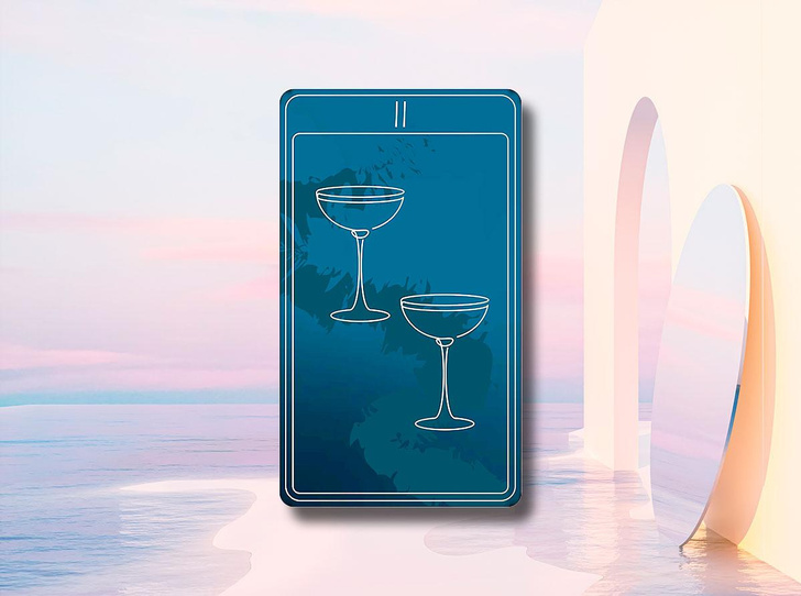 Картата „ Двете чаши “ ни припомня, че взаимоотношенията би трябвало да са здрави, да носят позитивни страсти и сила. Основното е да помним, че и двамата сътрудници би трябвало да влагат силите си и да си взаимодействат еднообразно за постигането на тази цел, в противоположен случай не може да се сътвори хармонична връзка.