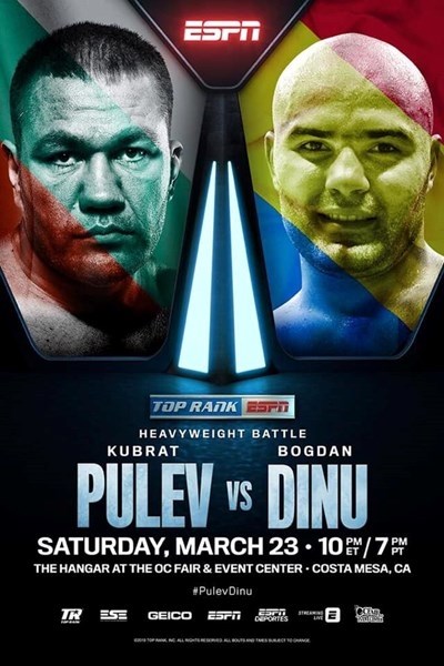 Иначе с наближаването на галавечерта в Коста Меса, към този момент стартира да се обяснява и програмата. Очаква се Пулев и Дину да излязат на кръга към 22:00 часа локално време в събота, 23 март. При състояние, че сега Калифорния е с 9 часа обратно от София, това значи, че мачът ще стартира у нас към 7:00 часа сутринта на 24 март.