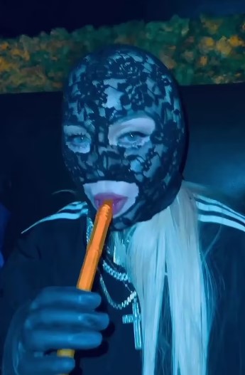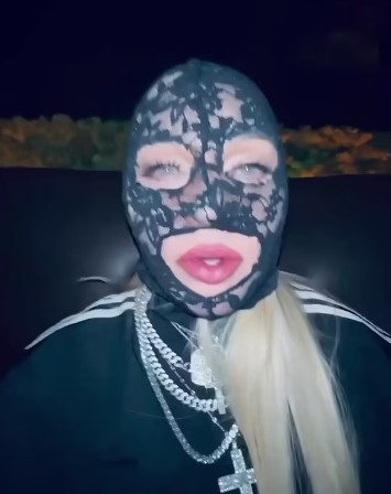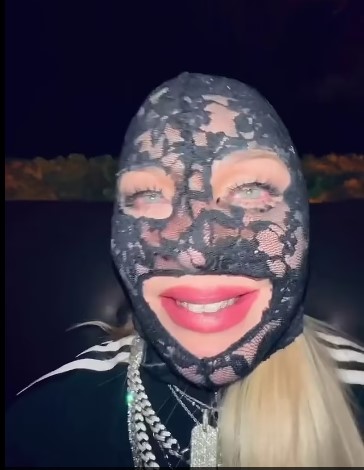 63-годишната мегазвезда беше забелязана да пуши, до момента в който носи черна дантелена балаклава маска на лицето си.