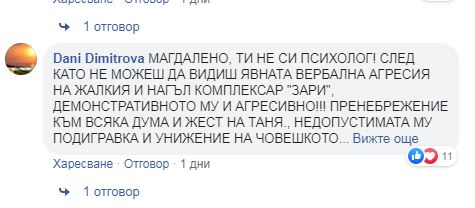 Шегобийци даже предложиха Маги да се качи на полилея, с цел да вижда отвисоко по-ясно проблемите на прясно бракуваните. Други се възмутиха от отношението й към Светлозар. „ Магдалено, ти не си психолог, откакто не можеш да видиш явната вербална експанзия на жалкия и безочлив комплексар Зари ”, написа зрителка. Друга пък отива по-далеч и я афишира за „ доста зле ”.