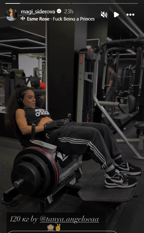 Маги Сидерова още веднъж сподели желязна дисциплинираност и впечатляваща физическа форма. В клип от залата тя показва силата си, вдигайки цели 120 кг – достижение, с което малко на брой мъже могат да се похвалят.