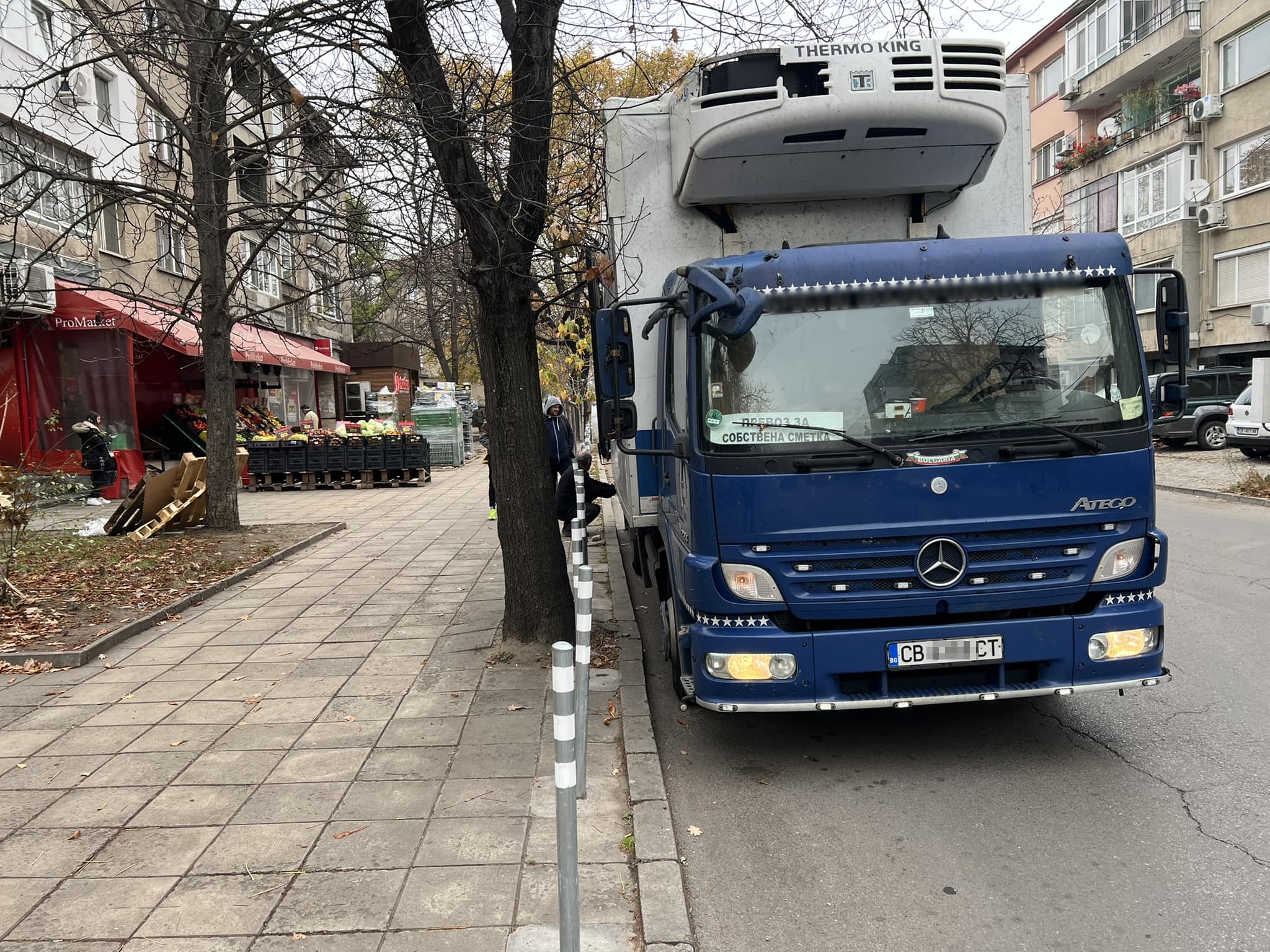 Камиони зареждат магазин в столицата и не гасят двигателя. Замърсяват ли въздуха?